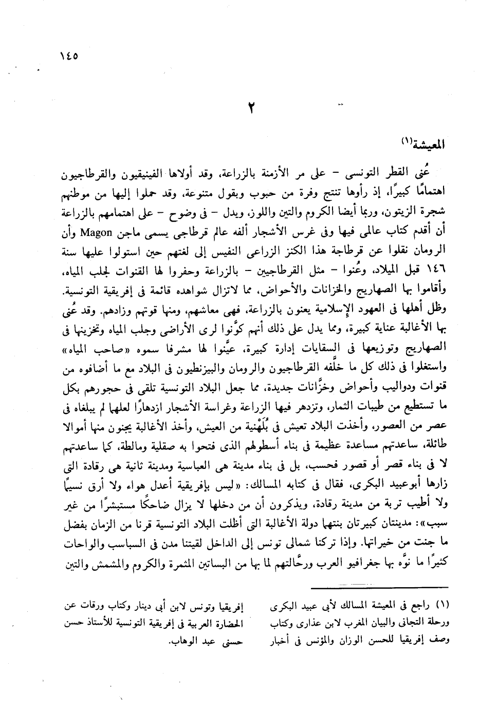 (¬1) راجع فى المعيشة المسالك لأبى عبيد البكرى ورحلة التجانى والبيان المغرب لابن عذارى وكتاب وصف إفريقيا للحسن الوزان والمؤنس فى أخبار إفريقيا وتونس لابن أبى دينار وكتاب ورقات عن الحضارة العربية فى إفريقية التونسية للأستاذ حسن حسنى عبد الوهاب.