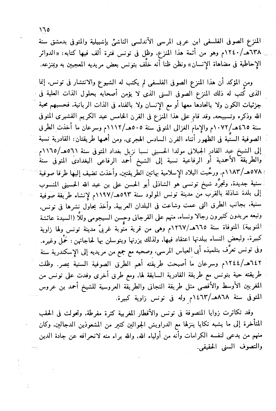 المنزع الصوفى الفلسفى ابن عربى المرسى الأندلسى الناشئ بإشبيلية والمتوفى بدمشق سنة 638 هـ/1240 م وهو من أئمة هذا المنزع، وظل فى تونس فترة ألف فيها كتابه: «الدوائر الإحاطية فى مضاهاة الإنسان» ونظن ظنا أنه خلّف بتونس بعض مريديه المعجبين به وبمنزعه.