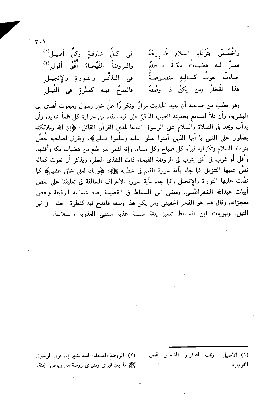 (¬2) الروضة الفيحاء: لعله يشير إلى قول الرسول صلّى الله عليه وسلّم ما بين قبرى ومنبرى روضة من رياض الجنة.