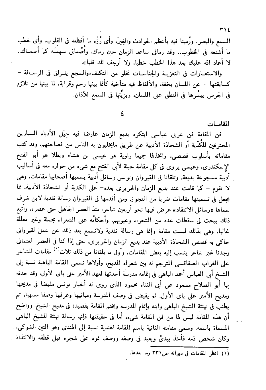 (¬1) انظر المقامات فى ديوانه ص 331 وما بعدها.