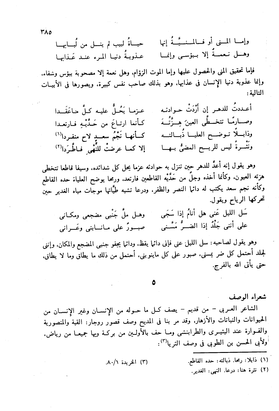 فإما تحقيق المنى والحصول عليها وإما الموت الزؤام، وهل نعمة إلا مصحوبة ببؤس وشقاء، وإنما عذوبة دنيا الإنسان فى عذابها، وهو بذلك صاحب نفس كبيرة، ويصورها فى الأبيات التالية: