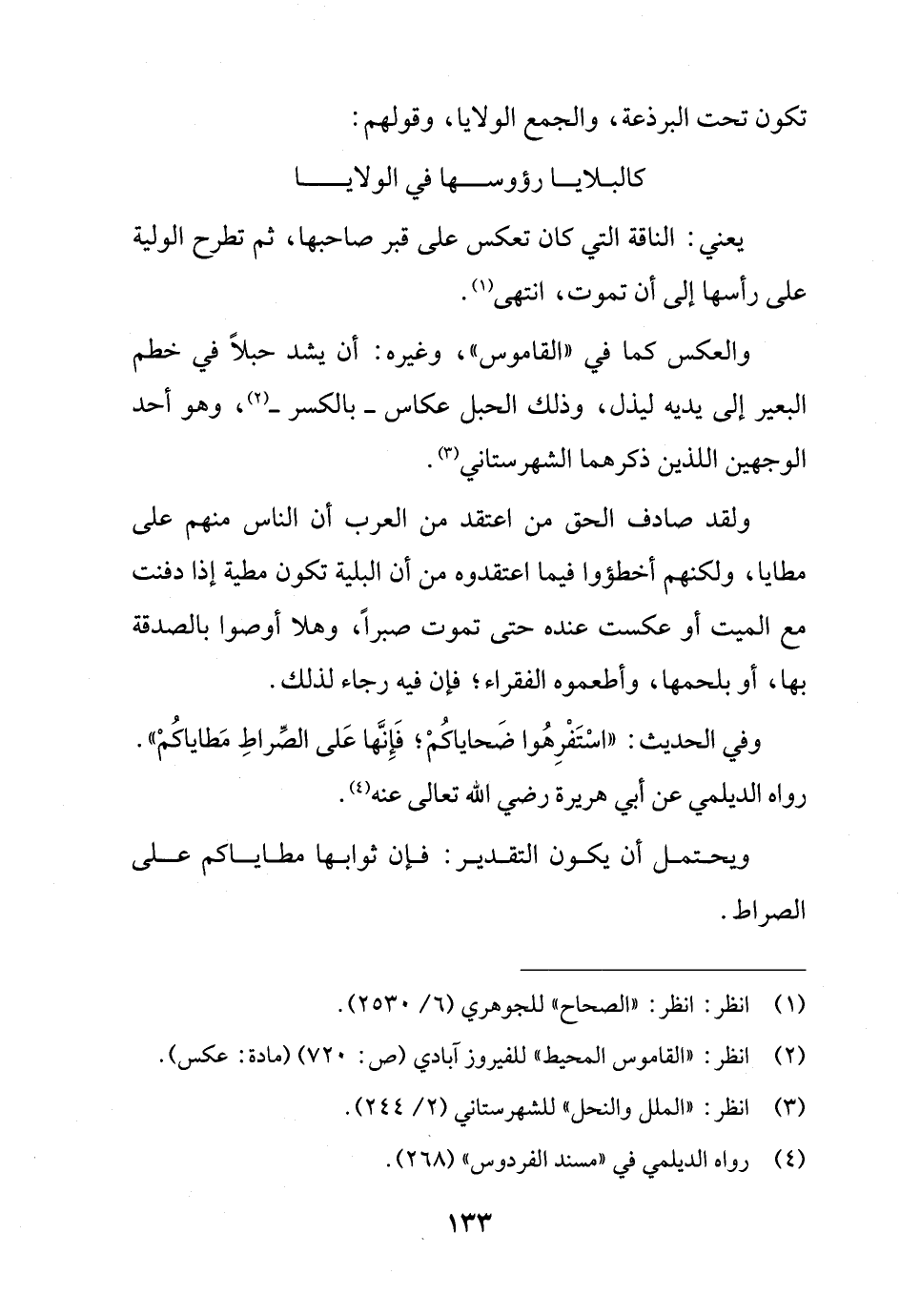 والعكس كما في "القاموس"، وغيره: أن يشد حبلًا في خطم البعير إلى يديه ليذل، وذلك الحبل عكاس - بالكسر - (¬2)، وهو أحد الوجهين اللذين ذكرهما الشهرستاني (¬3).