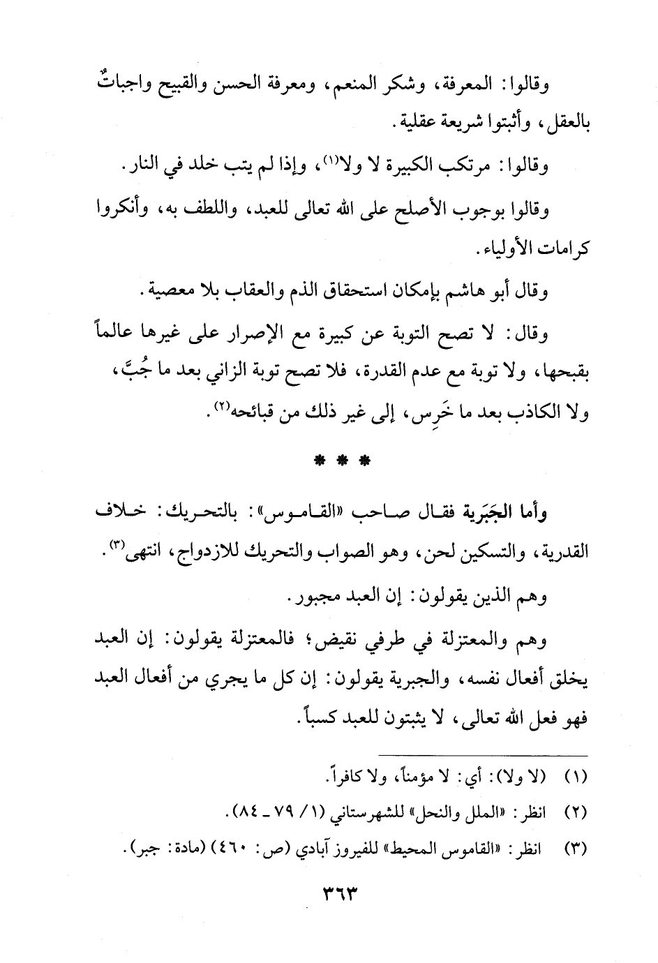 وأما الجَبَرية فقال صاحب "القاموس": بالتحريك: خلاف القدرية، والتسكين لحن، وهو الصواب والتحريك للازدواج، انتهى (¬3).