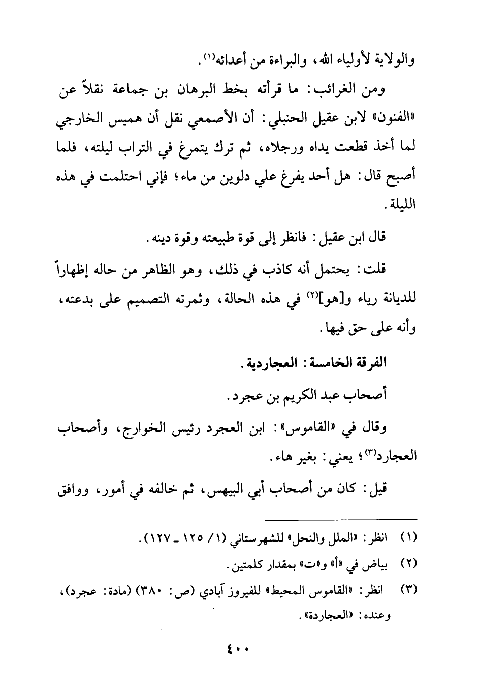 (¬3) انظر: "القاموس المحيط" للفيروز آبادي (ص: 380) (مادة: عجرد)، وعنده: "العجاردة".