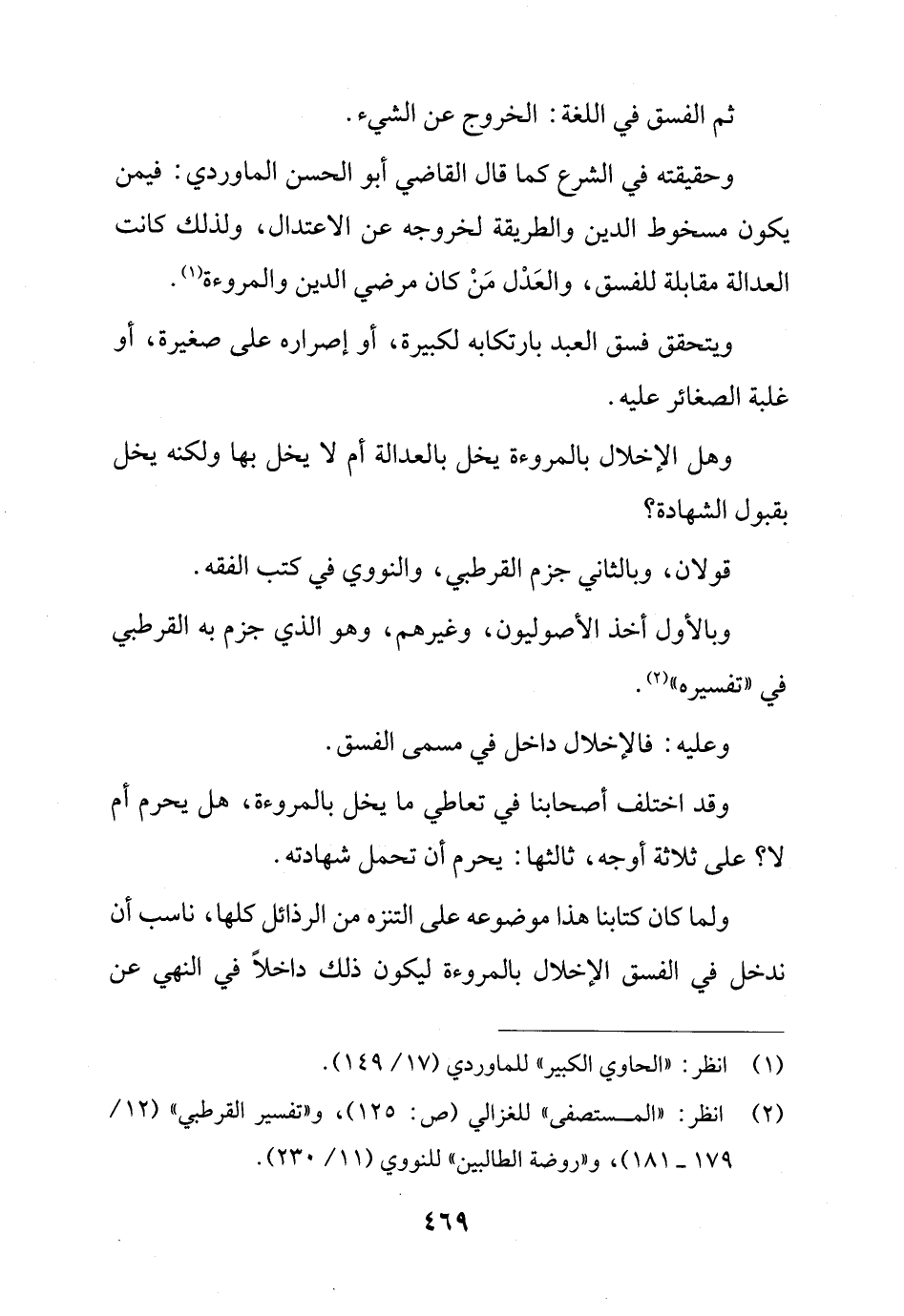 ولما كان كتابنا هذا موضوعه على التنزه من الرذائل كلها، ناسب أن ندخل في الفسق الإخلال بالمروءة ليكون ذلك داخلًا في النّهي عن