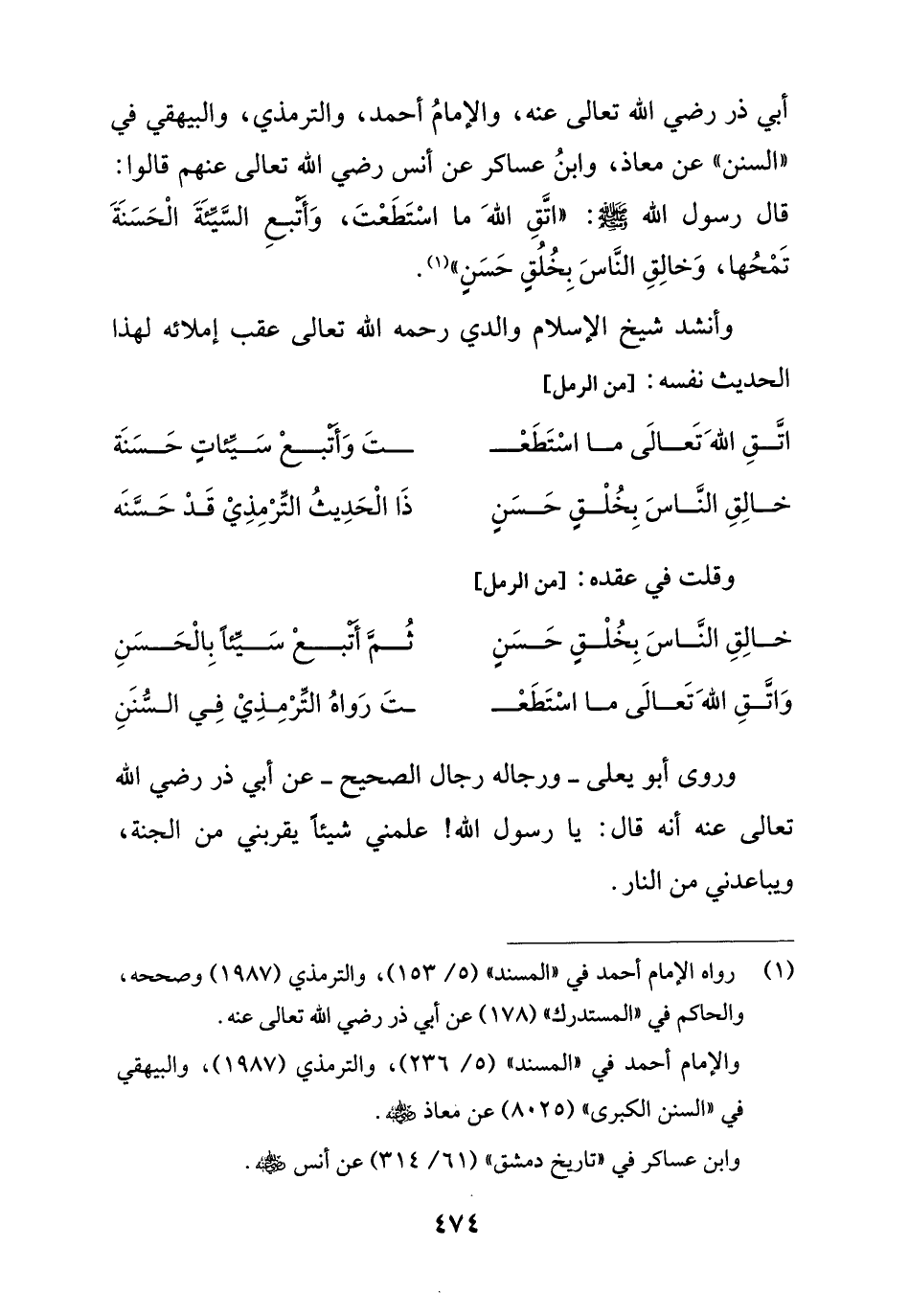 وَاتَّقِ اللهَ تَعالَى ما اسْتَطَعْـ ... ـتَ رَواهُ التِّرْمِذِيْ فِي السُّنَنِ