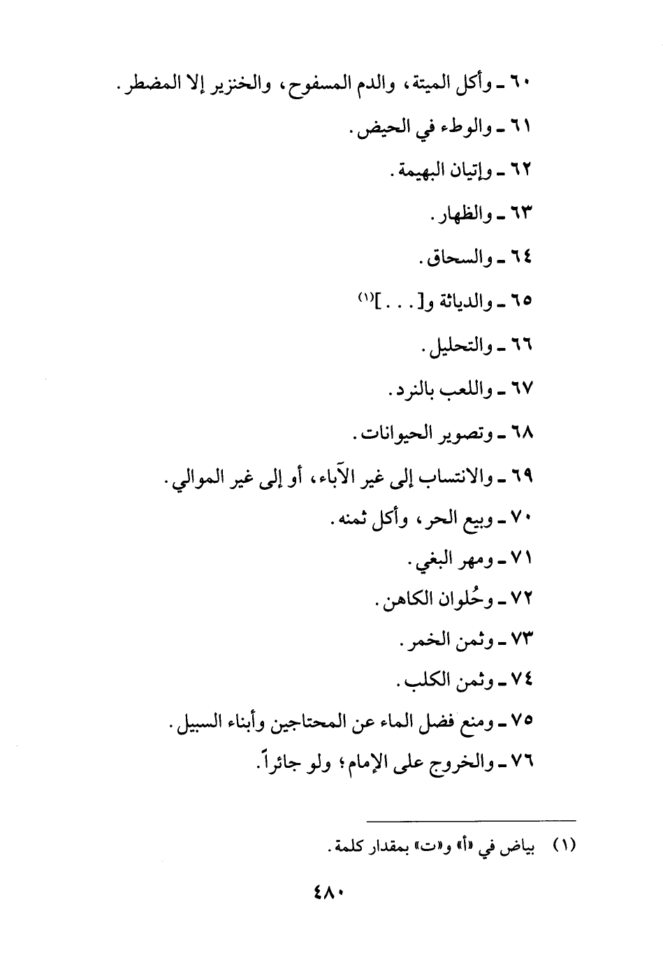 60 - وأكل الميِّتة، والدم المسفوح، والخنزير إِلَّا المضطر.