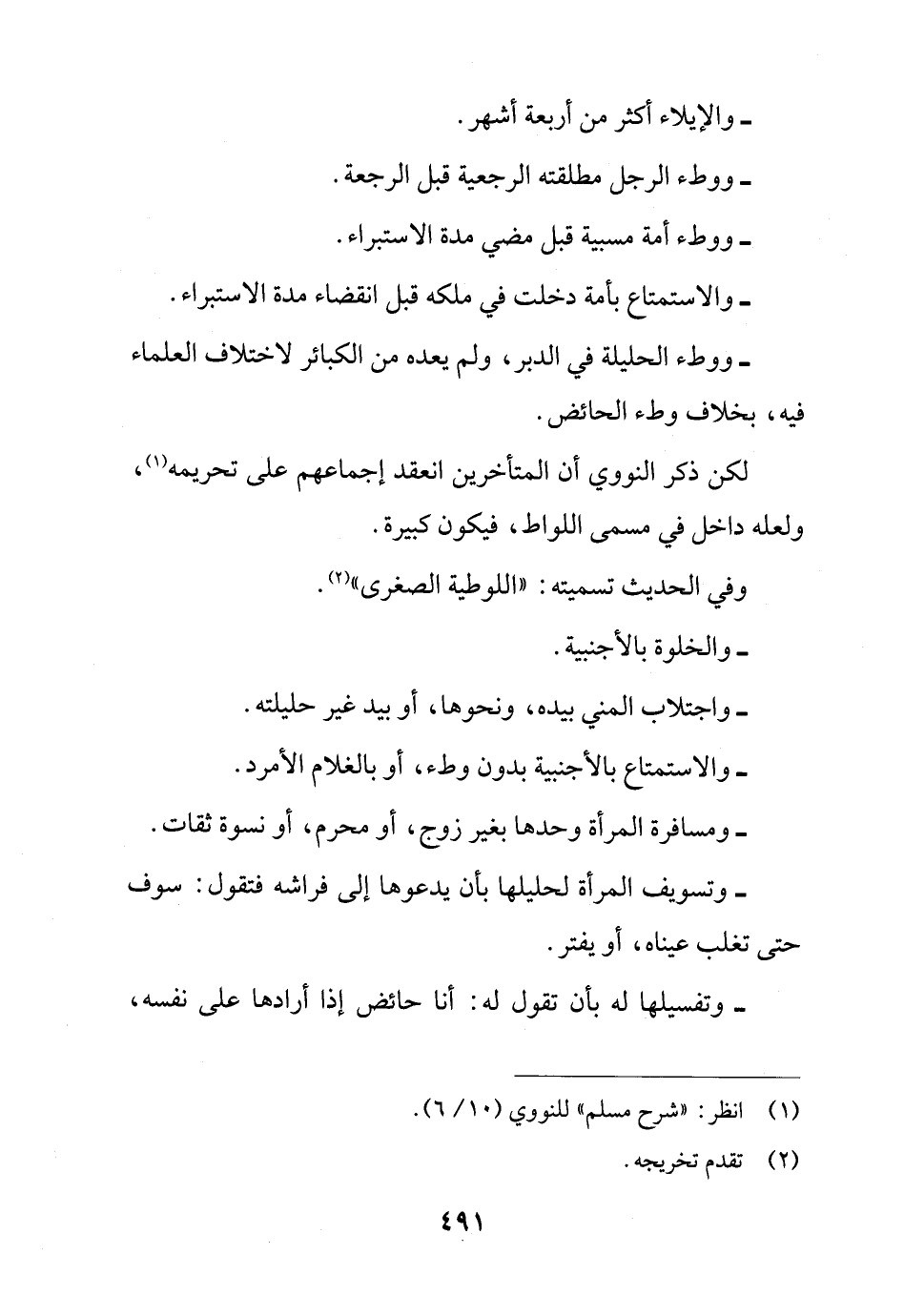 - ووطء الحليلة في الدبر، ولم يعده من الكبائر لاختلاف العلماء فيه، بخلاف وطء الحائض.