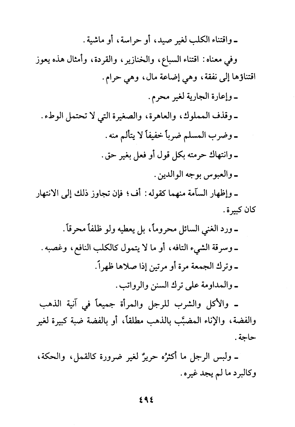 وفي معناه: اقتناء السِّباع، والخنازير، والقردة، وأمثال هذه يعوز اقتناؤها إلى نفقة، وهي إضاعة مال، وهي حرام.