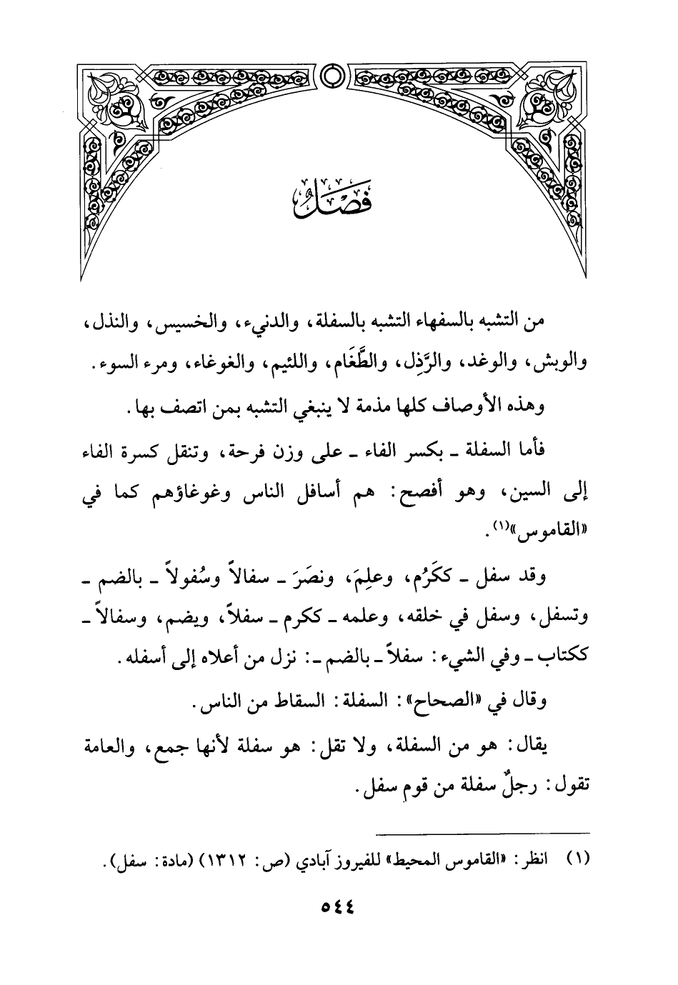 (¬1) انظر: "القاموس المحيط" للفيروز آبادي (ص: 1312) (مادة: سفل).
