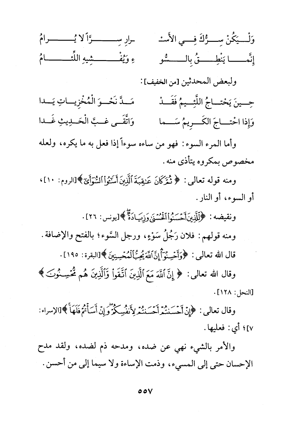 والأمر بالشيء نهي عن ضده، ومدحه ذم لضده، ولقد مدح الإحسان حتى إلى المسيء، وذمت الإساءة ولا سيما إلى من أحسن.