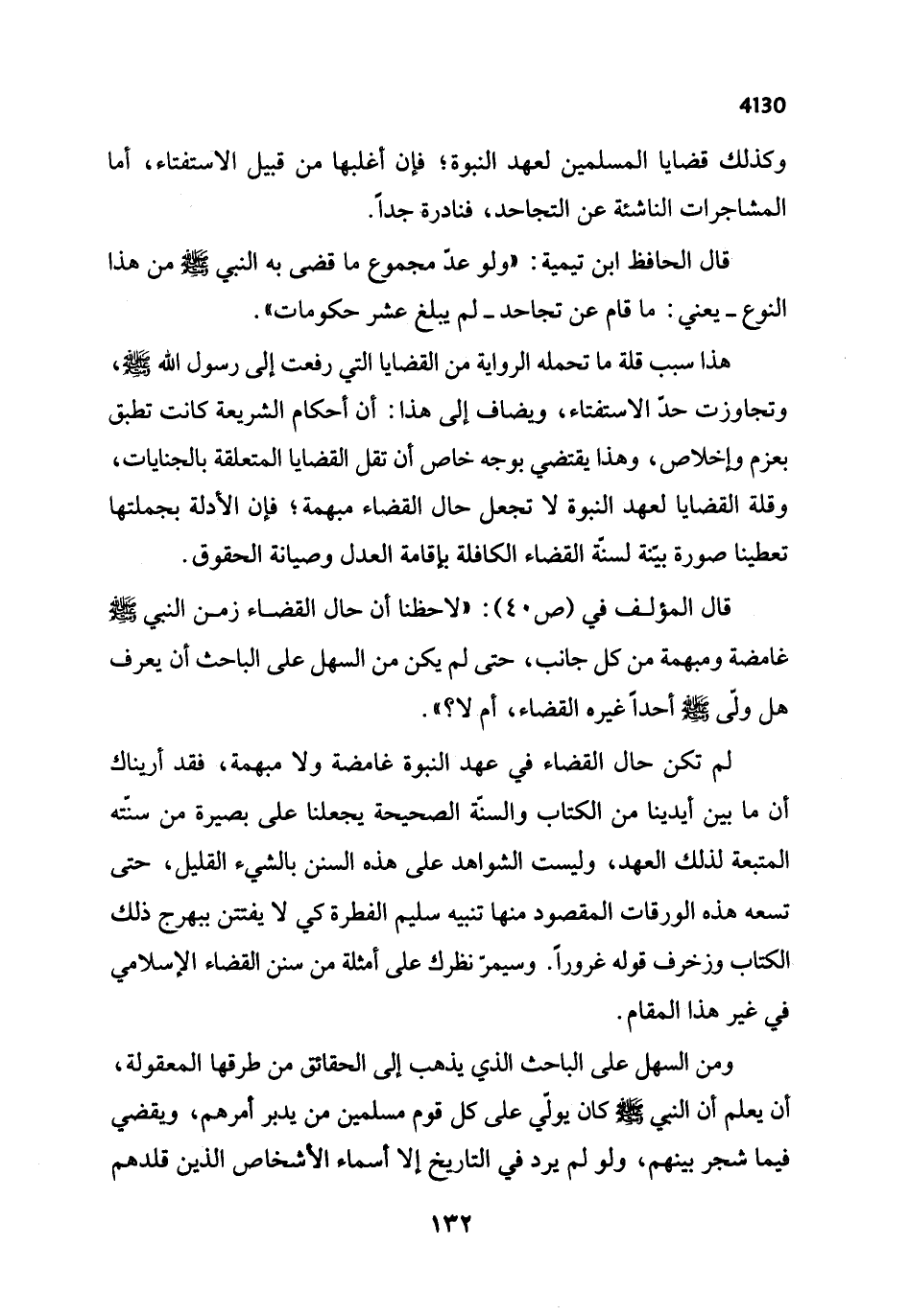 لم تكن حال القضاء في عهد النبوة غامضة ولا مبهمة، فقد أريناك أن ما بين أيدينا من الكتاب والسنّة الصحيحة يجعلنا على بصيرة من سنّته المتبعة لذلك العهد، وليست الشواهد على هذه السنن بالشيء القليل، حتى تسعه هذه الورقات المقصود منها تنبيه سليم الفطرة كي لا يفتتن ببهرج ذلك الكتاب وزخرف قوله غروراً. وسيمرّ نظرك على أمثلة من سنن القضاء الإسلامي في غير هذا المقام.
