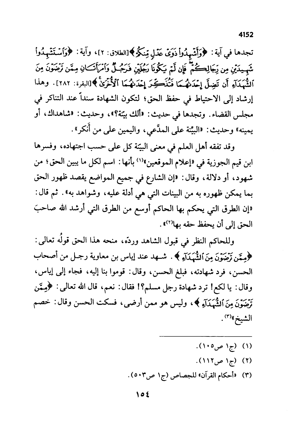 وللحاكم النظر في قبول الشاهد وردّه، منحه هذا الحق قولُه تعالى: {مِمَّنْ تَرْضَوْنَ مِنَ الشُّهَدَاءِ}. شهد عند إياس بن معاوية رجل من أصحاب الحسن، فرد شهادته، فبلغ الحسن، وقال: قوموا بنا إليه، فجاء إلى إياس، وقال: يا لكع! ترد شهادة رجل مسلم؟! فقال: نعم، قال الله تعالى: {مِمَّنْ تَرْضَوْنَ مِنَ الشُّهَدَاءِ}، وليس هو ممن أرضى، فسكت الحسن وقال: خصم الشيخ" (¬3).