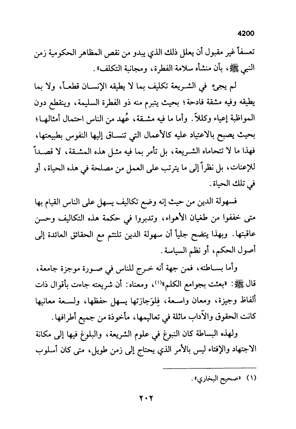 وأما بساطته، فمن جهة أنه خرج للناس في صورة موجزة جامعة، قال - صلى الله عليه وسلم -: "بعثت بجوامع الكلم" (¬1)، ومعناه: أن شريعته جاءت بأقوال ذات ألفاظ وجيزة، ومعان واسعة، فِلوَجازتها يسهل حفظها، ولسعة معانيها كانت الحقوق والآداب ماثلة في تعاليمها، مأخوذة من جميع أطرافها.