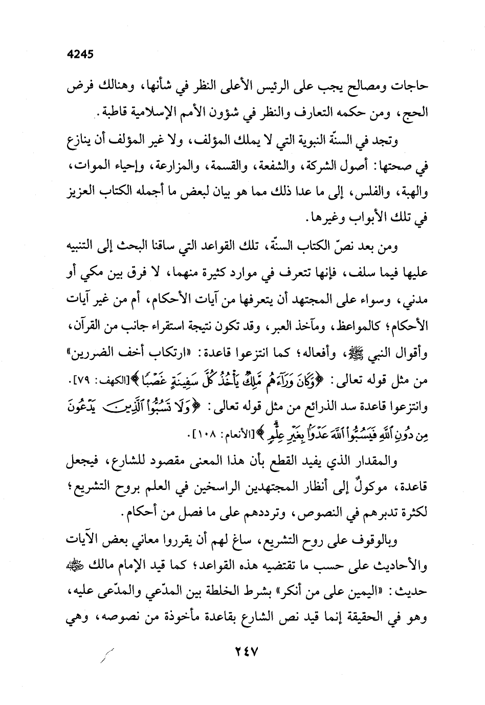 حاجات ومصالح يجب على الرئيس الأعلى النظر في شأنها، وهنالك فرض الحج، ومن حكمه التعارف والنظر في شؤون الأمم الإسلامية قاطبة.
