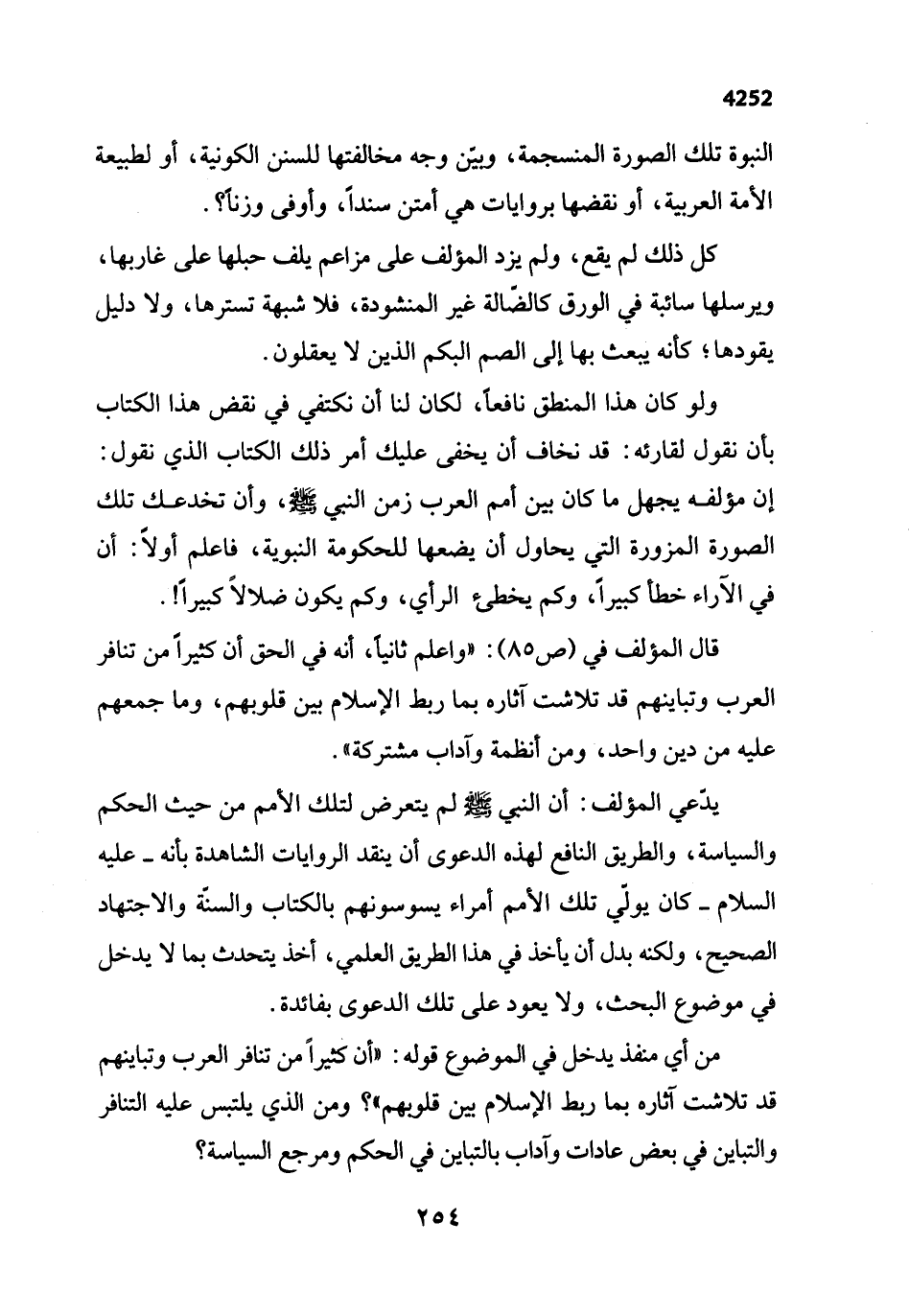 النبوة تلك الصورة المنسجمة، وبيّن وجه مخالفتها للسنن الكونية، أو لطبيعة الأمة العربية، أو نقضها بروايات هي أمتن سنداً، وأوفى وزناً؟.
