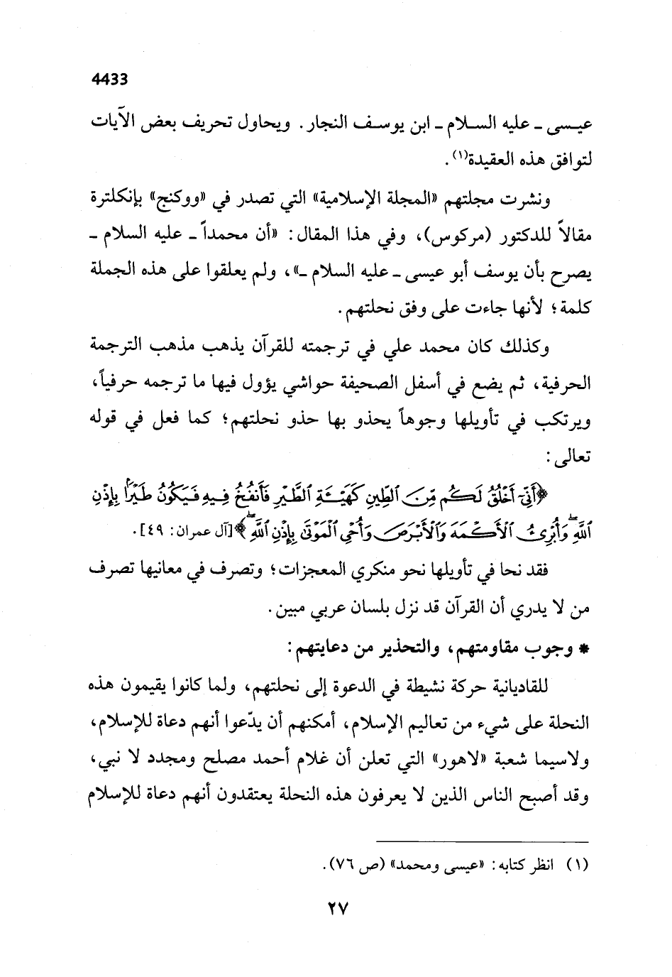 ونشرت مجلتهم "المجلة الإسلامية" التي تصدر في "ووكنج" بإنكلترة مقالاً للدكتور (مركوس)، وفي هذا المقال: "أن محمداً - عليه السلام - يصرح بأن يوسف أبو عيسى - عليه السلام -"، ولم يعلقوا على هذه الجملة كلمة؛ لأنها جاءت على وفق نحلتهم.