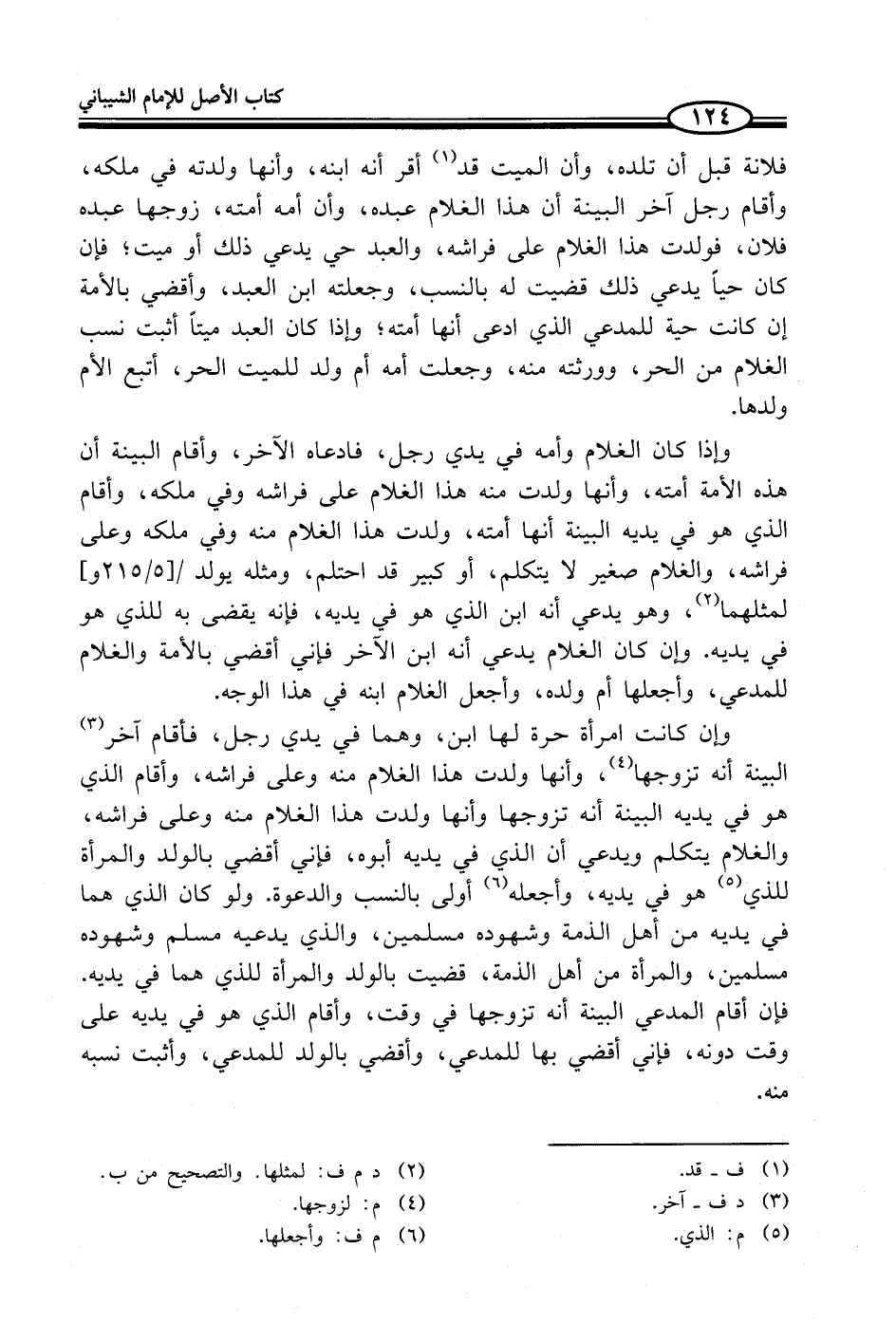 وإذا كان الغلام وأمه في يدي رجل، فادعاه الآخر، وأقام البينة أن هذه الأمة أمته، وأنها ولدت منه هذا الغلام على فراشه وفي ملكه، وأقام الذي هو في يديه البينة أنها أمته، ولدت هذا الغلام منه وفي ملكه وعلى فراشه، والغلام صغير لا يتكلم، أو كبير قد احتلم، ومثله يولد لمثلهما (¬2)، وهو يدعي أنه ابن الذي هو في يديه، فإنه يقضى به للذي هو في يديه. وإن كان الغلام يدعي أنه ابن الآخر فإني أقضي بالأمة والغلام للمدعي، وأجعلها أم ولده، وأجعل الغلام ابنه في هذا الوجه. وإن كانت امرأة حرة لها ابن، وهما في يدي رجل، فأقام آخر (¬3) البينة أنه تزوجها (¬4)، وأنها ولدت هذا الغلام منه وعلى فراشه، وأقام الذي هو في يديه البينة أنه تزوجها وأنها ولدت هذا الغلام منه وعلى فراشه، والغلام يتكلم ويدعي أن الذي في يديه أبوه، فإني أقضي بالولد والمرأة للذي (¬5) هو في يديه، وأجعله (¬6) أولى بالنسب والدعوة. ولو كان الذي هما في يديه من أهل الذمة وشهوده مسلمين، والذي يدعيه مسلم وشهوده مسلمين، والمرأة من أهل الذمة، قضيت بالولد والمرأة للذي هما في يديه. فإن أقام المدعي البينة أنه تزوجها في وقت، وأقام الذي هو في يديه على وقت دونه، فإني أقضي بها للمدعي، وأقضي بالولد للمدعي، وأثبت نسبه منه.