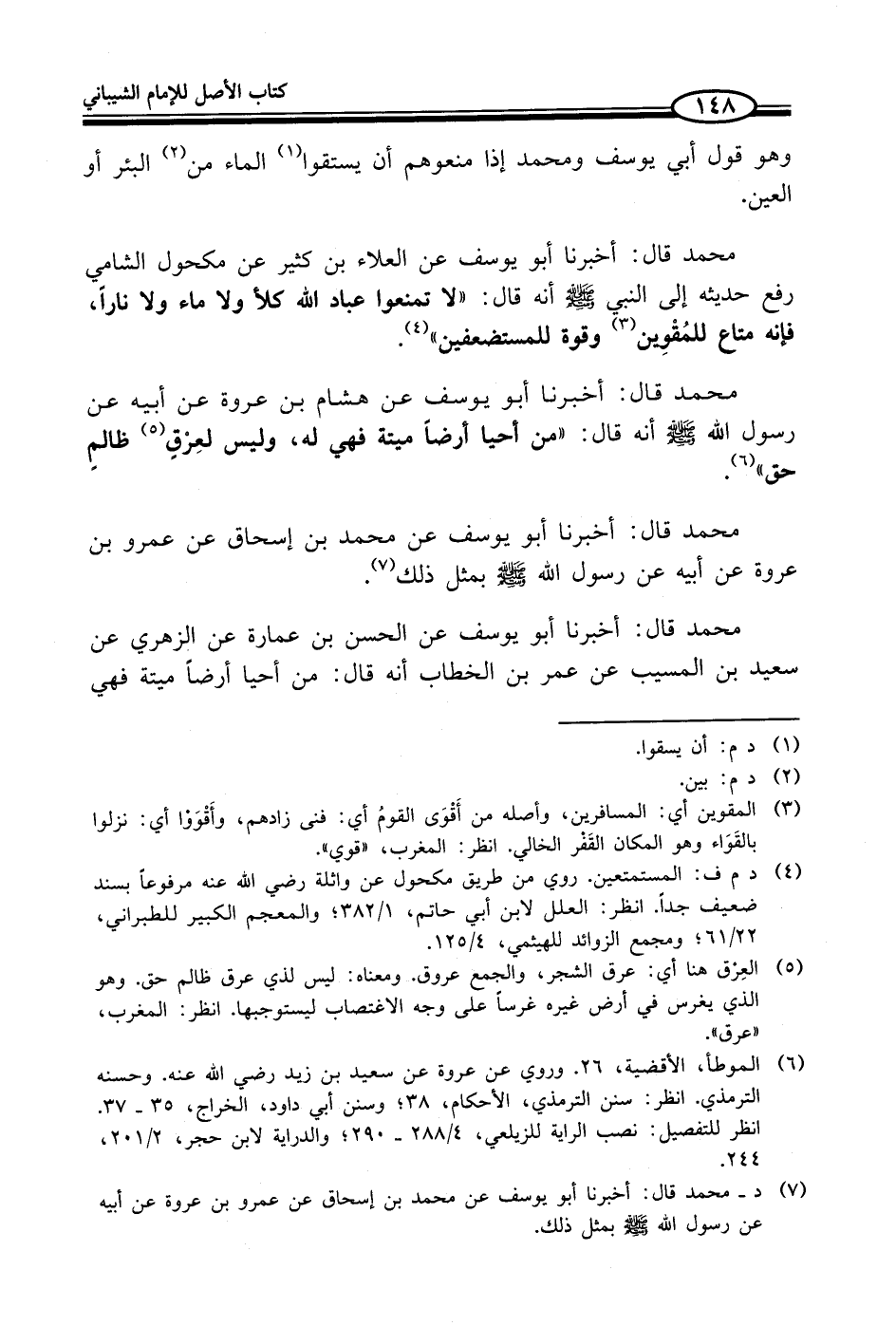 (¬7) د - محمد قال: أخبرنا أبو يوسف عن محمد بن إسحاق عن عمرو بن عروة عن أبيه عن رسول الله - صلى الله عليه وسلم - بمثل ذلك.