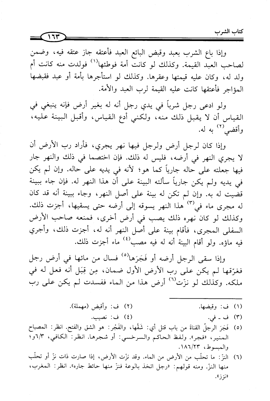 (¬5) فَجَرَ الرجلُ القناةَ من باب قتل أي: شَقَّها، والفَجْر: هو الشق والفتح. انظر: المصباح المنير، "فجر". ولفظ الحاكم والسرخسي: أو شجرها. انظر: الكافي، 3/ 6 و؛ والمبسوط، 23/ 186.