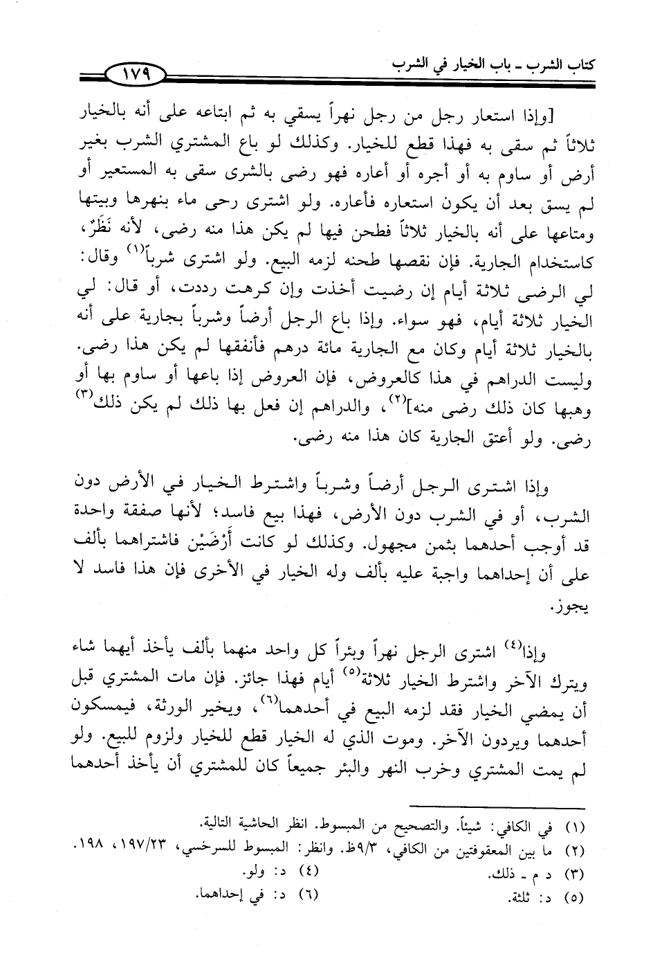 (¬2) ما بين المعقوفتين من الكافي، 3/ 9 ظ. وانظر: المبسوط للسرخسي، 23/ 197، 198.