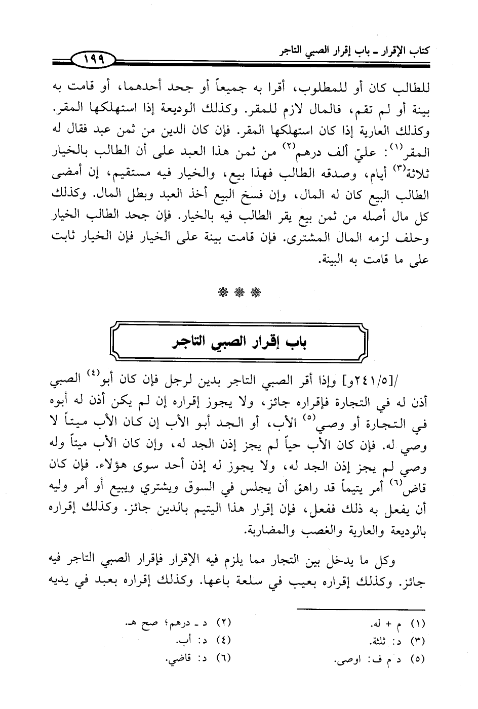 باب إقرار الصبيى التاجر