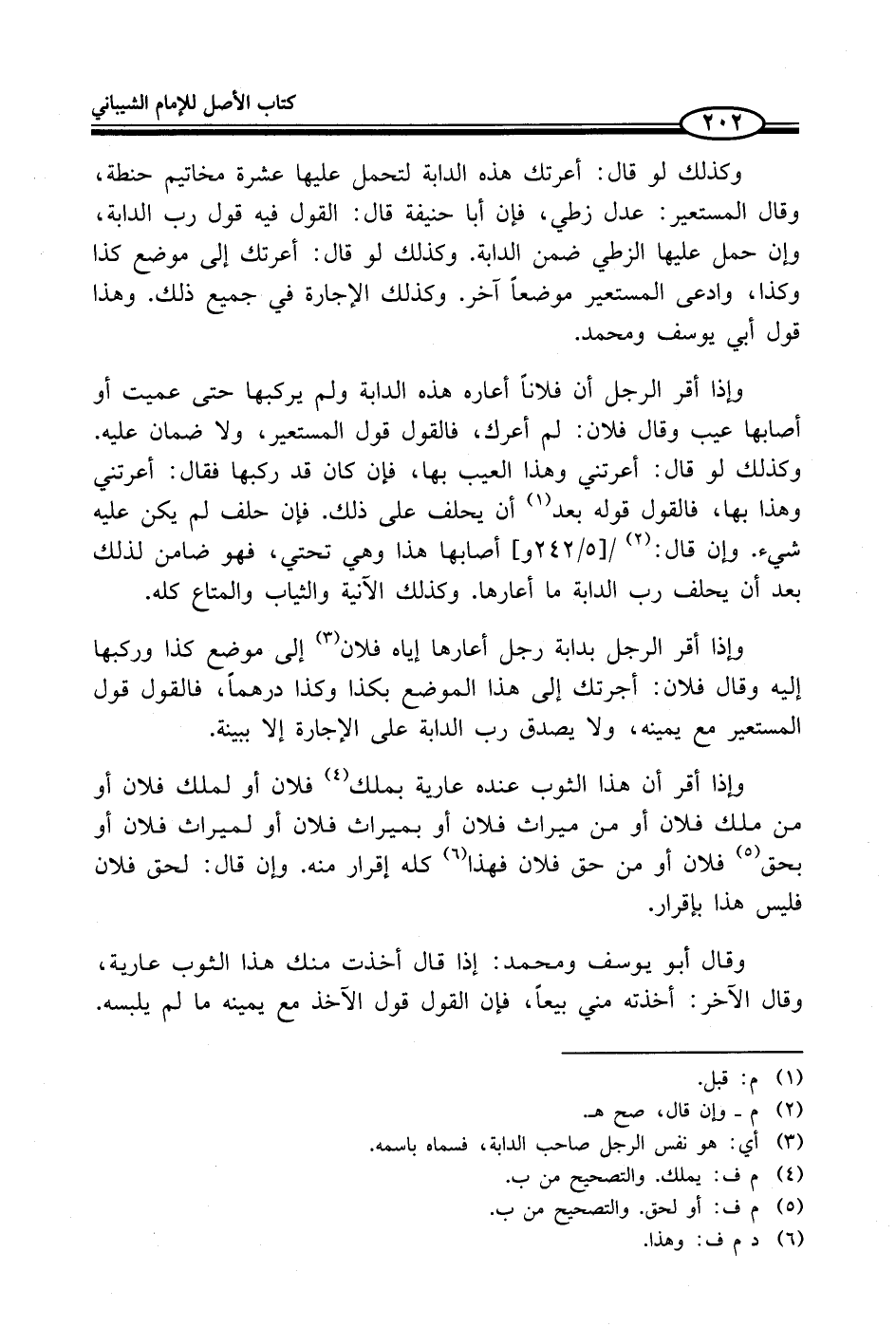 وإذا أقر الرجل أن فلاناً أعاره هذه الدابة ولم يركبها حتى عميت أو أصابها عيب وقال فلان: لم أعرك، فالقول قول المستعير، ولا ضمان عليه. وكذلك لو قال: أعرتني وهذا العيب بها، فإن كان قد ركبها فقال: أعرتني وهذا بها، فالقول قوله بعد (¬1) أن يحلف على ذلك. فإن حلف لم يكن عليه شيء. وإن قال: (¬2) أصابها هذا وهي تحتي، فهو ضامن لذلك بعد أن يحلف رب الدابة ما أعارها. وكذلك الآنية والثياب والمتاع كله.