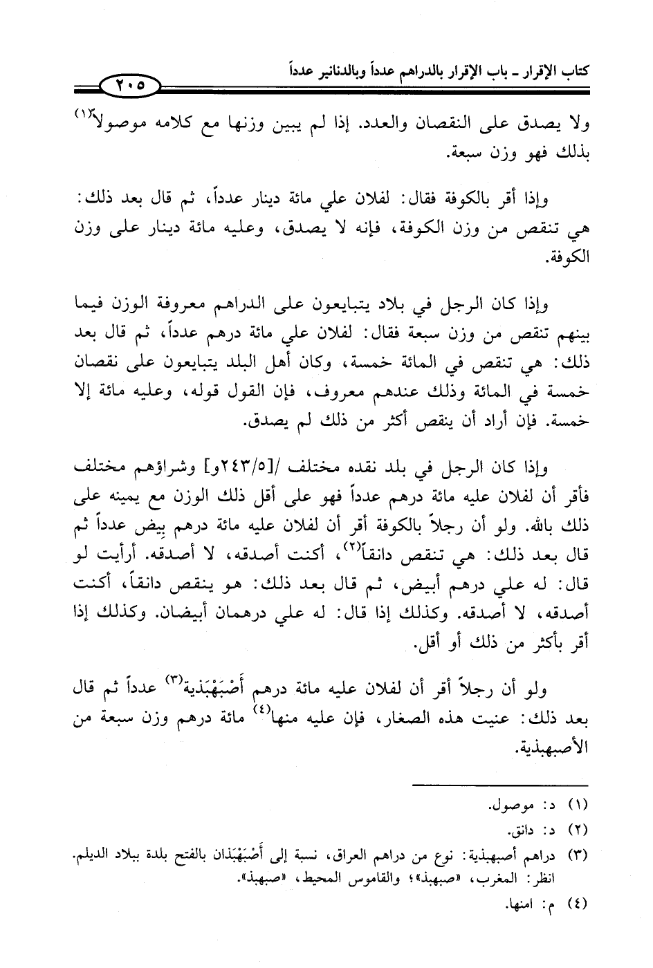 (¬3) دراهم أصبهبذية: نوع من دراهم العراق، نسبة إلى أَصْبَهْبَذان بالفتح بلدة ببلاد الديلم. انظر: المغرب، "صبهبذ"؛ والقاموس المحيط، "صبهبذ".