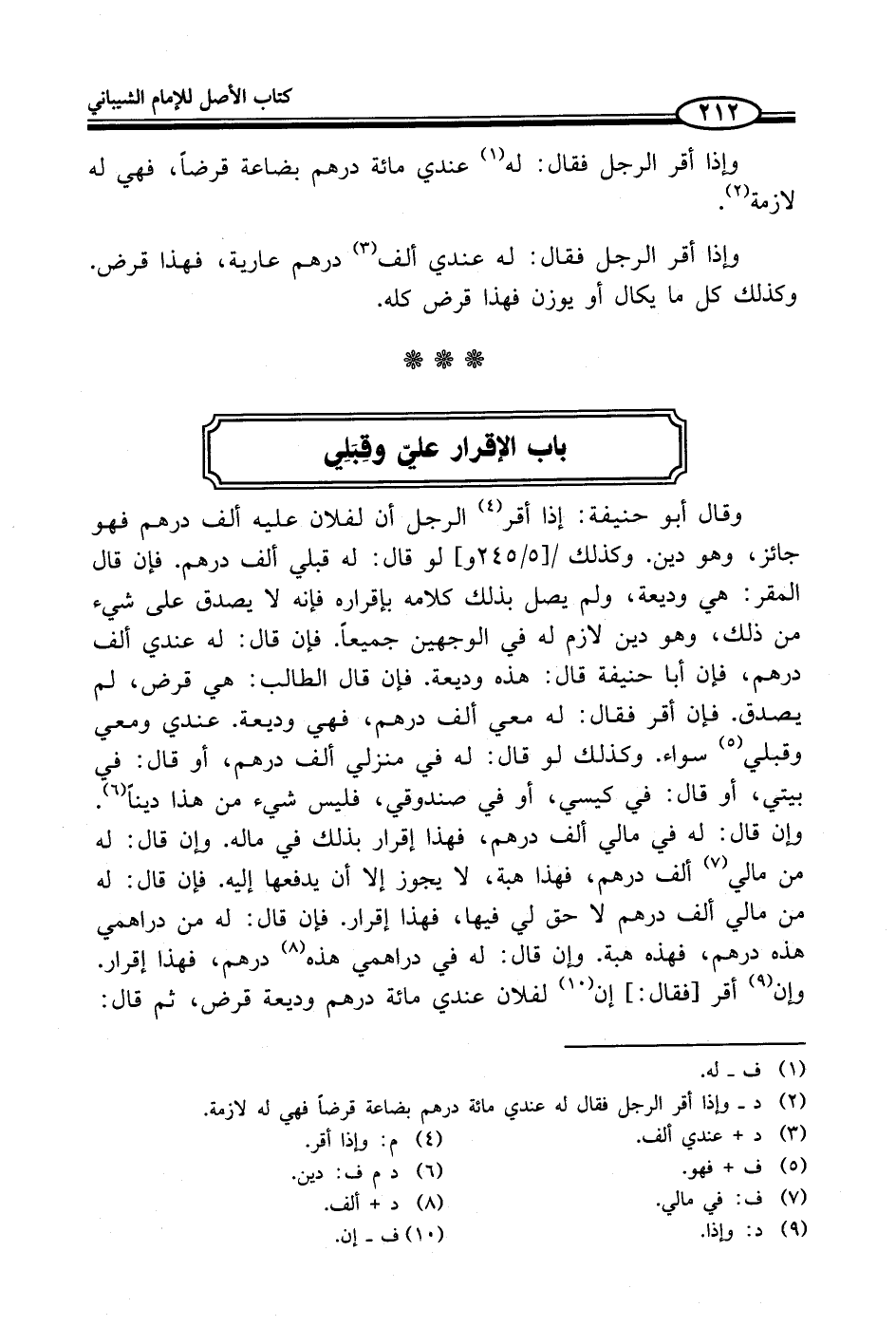 (¬2) د - وإذا أقر الرجل فقال له عندي مائة درهم بضاعة قرضاً فهي له لازمة.