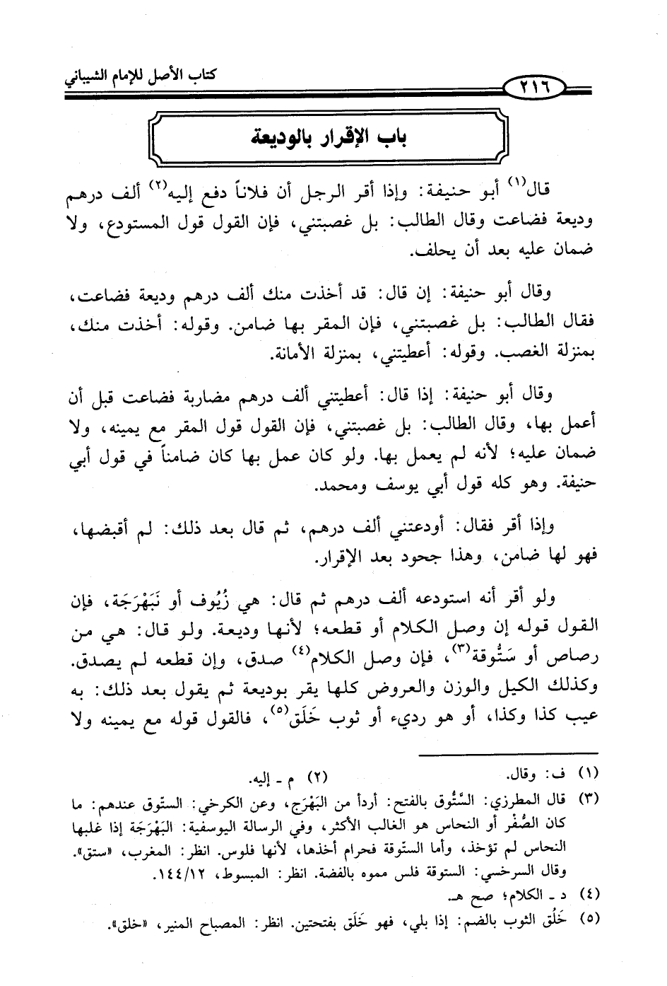 باب الإقرار بالوديعة