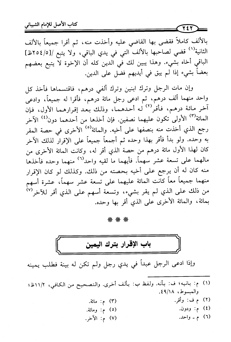 (¬1) م: بانيه؛ ف: بأنه. ولفظ ب: بألف أخرى. والتصحيح من الكافي، 2/ 11 ظ؛ والمبسوط، 18/ 49.