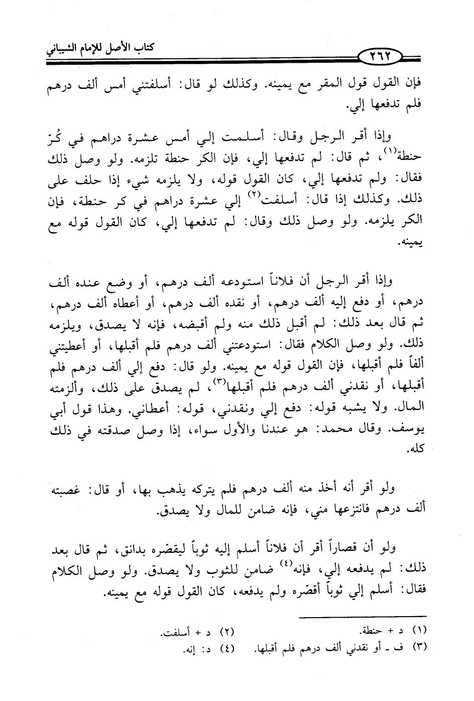 وإذا أقر الرجل أن فلاناً استودعه ألف درهم، أو وضع عنده ألف درهم، أو دفع إليه ألف درهم، أو نقده ألف درهم، أو أعطاه ألف درهم، ثم قال بعد ذلك: لم أقبل ذلك منه ولم أقبضه، فإنه لا يصدق، ويلزمه ذلك. ولو وصل الكلام فقال: استودعتني ألف درهم فلم أقبلها، أو أعطيتني ألفاً فلم أقبلها، فإن القول قوله مع يمينه. ولو قال: دفع إلي ألف درهم فلم أقبلها، أو نقدني ألف درهم فلم أقبلها (¬3)، لم يصدق على ذلك، وألزمته المال. ولا يشبه قوله: دفع إلي ونقدني، قوله: أعطاني. وهذا قول أبي يوسف. وقال محمد: هو عندنا والأول سواء، إذا وصل صدقته في ذلك كله.