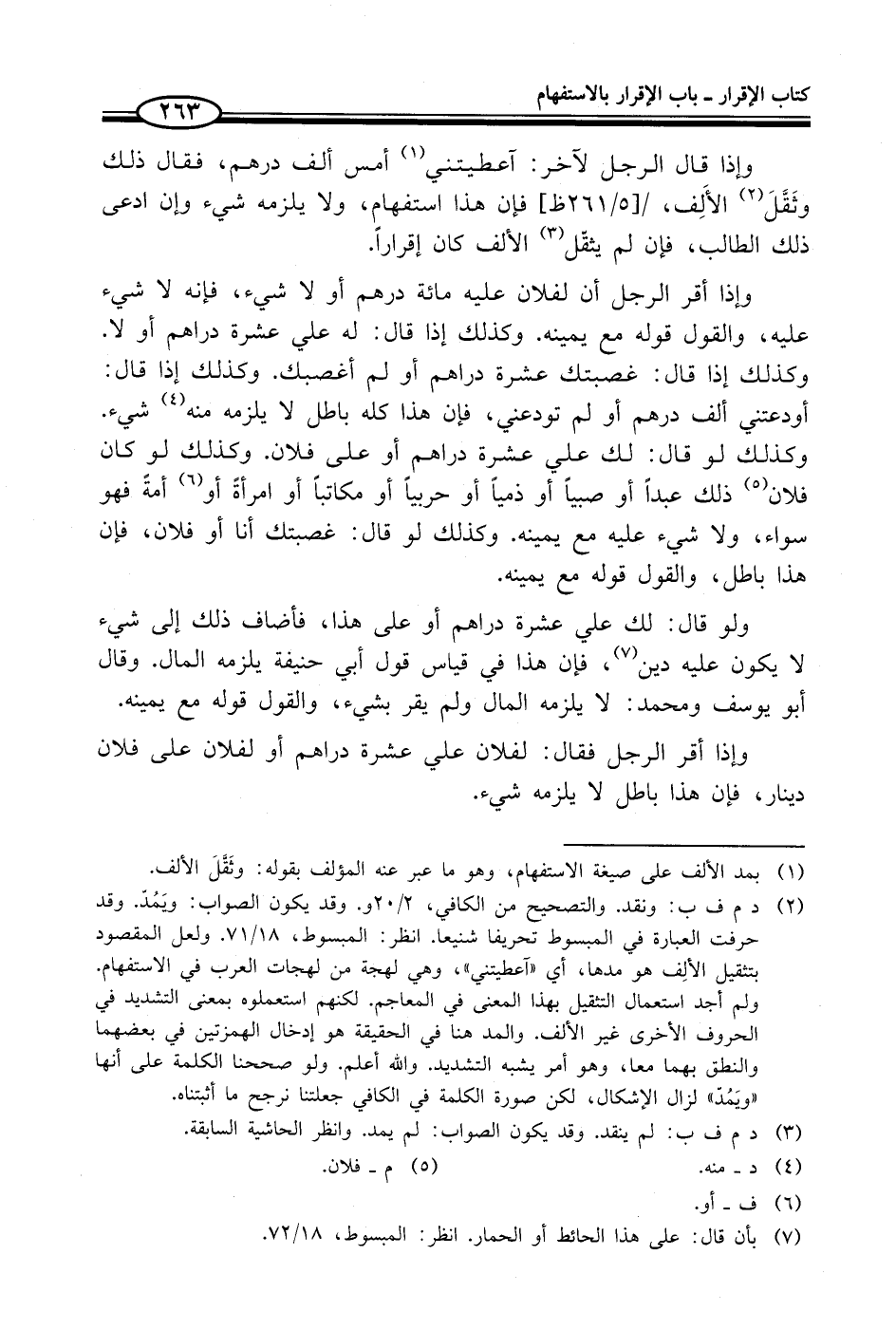 (¬7) بأن قال: على هذا الحائط أو الحمار. انظر: المبسوط، 18/ 72.