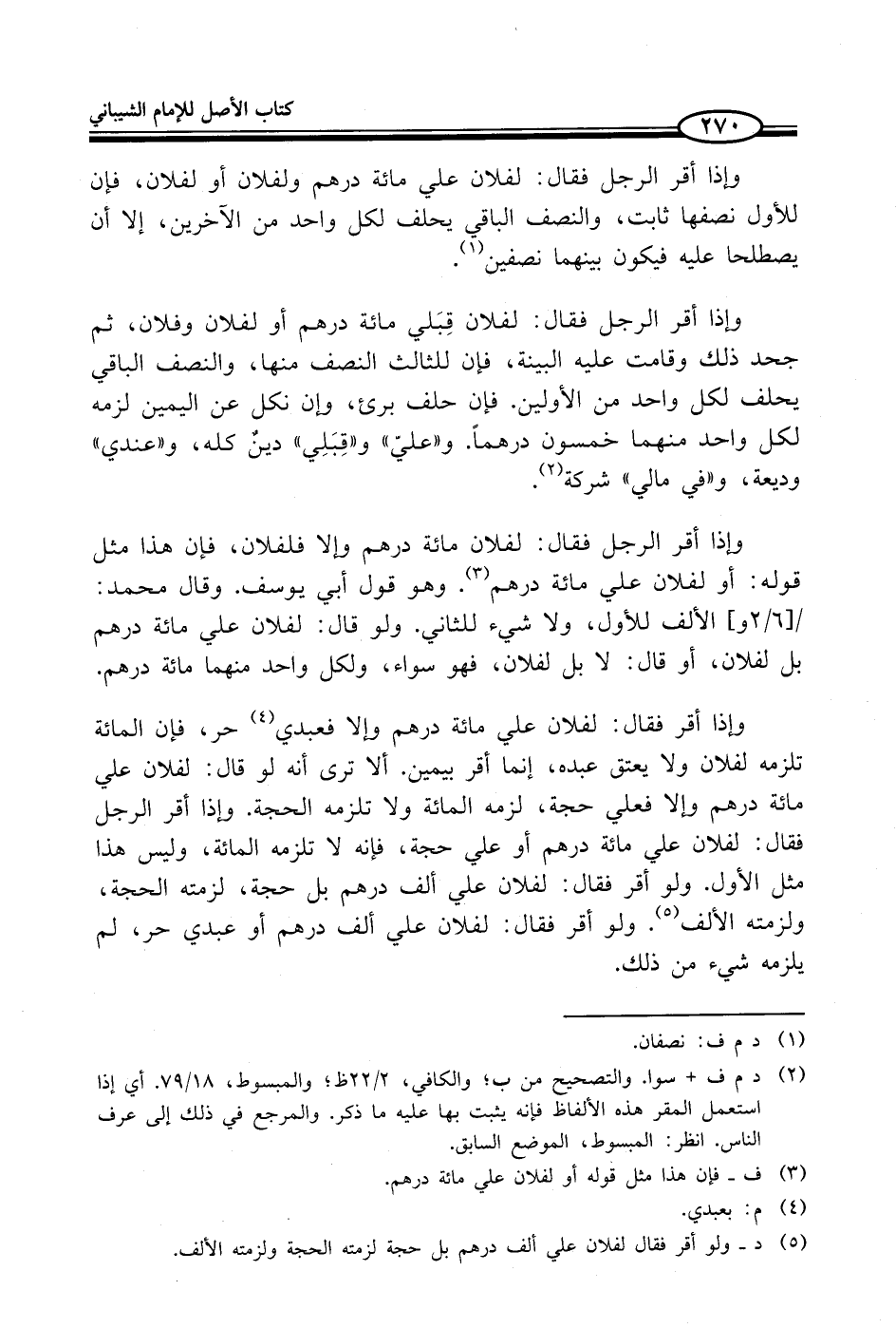 (¬2) د م ف + سوا. والتصحيح من ب؛ والكافي، 2/ 22 ظ؛ والمبسوط، 18/ 79. أي إذا استعمل المقر هذه الألفاظ فإنه يثبت بها عليه ما ذكر. والمرجع في ذلك إلى عرف الناس. انظر: المبسوط، الموضع السابق.