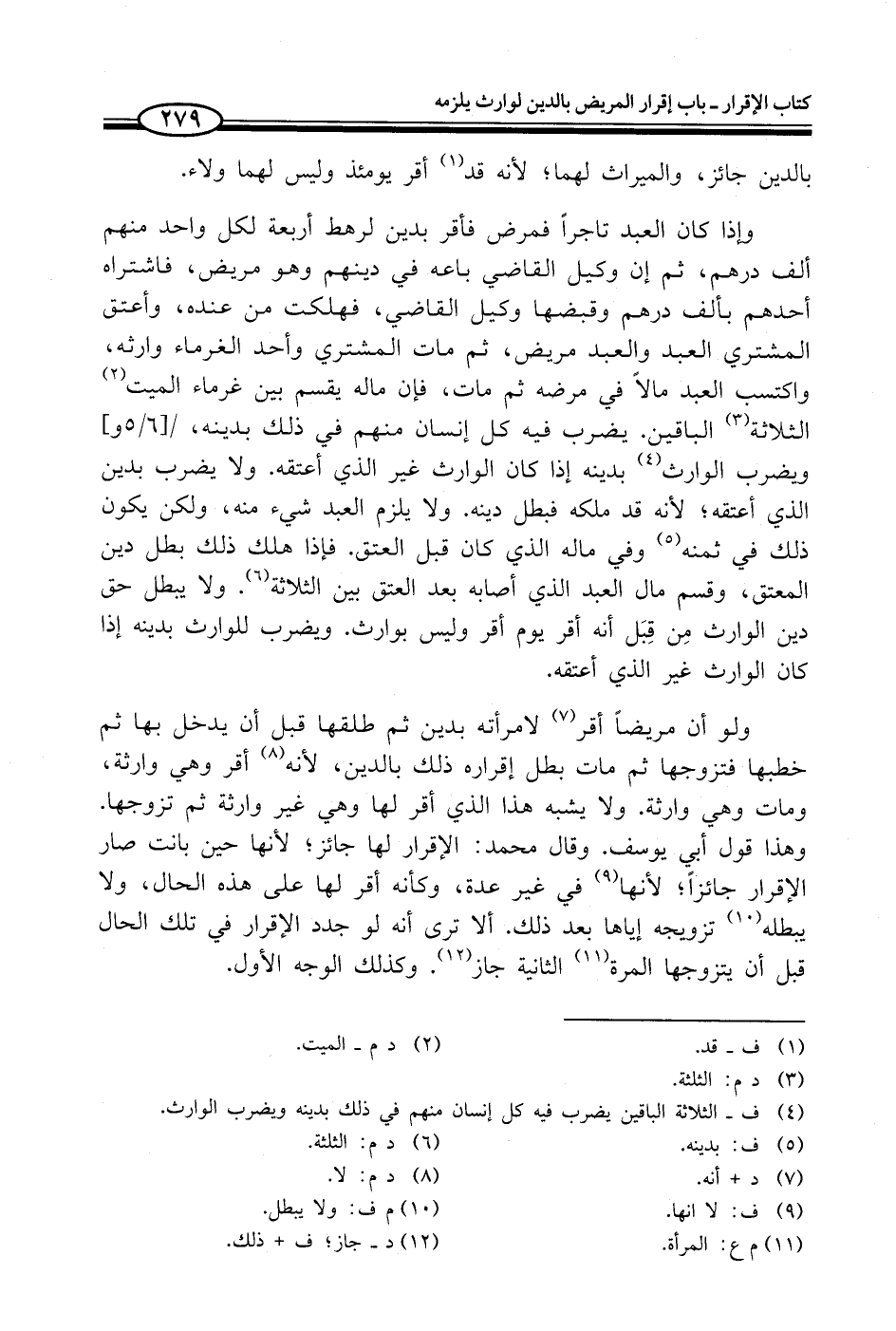 (¬4) ف - الثلاثة الباقين يضرب فيه كل إنسان منهم في ذلك بدينه ويضرب الوارث.