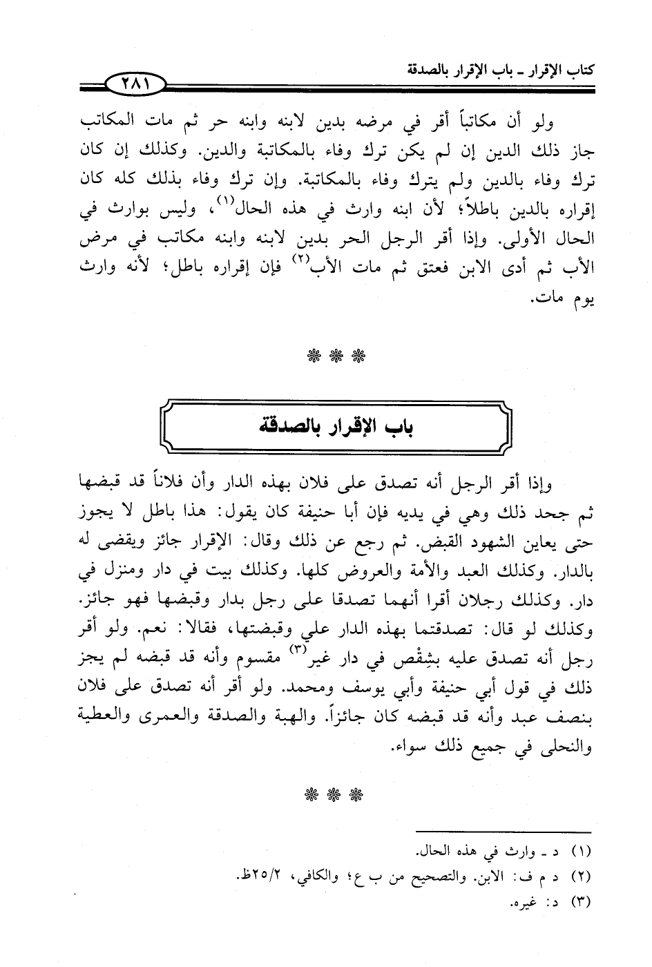 باب الإقرار بالصدقة