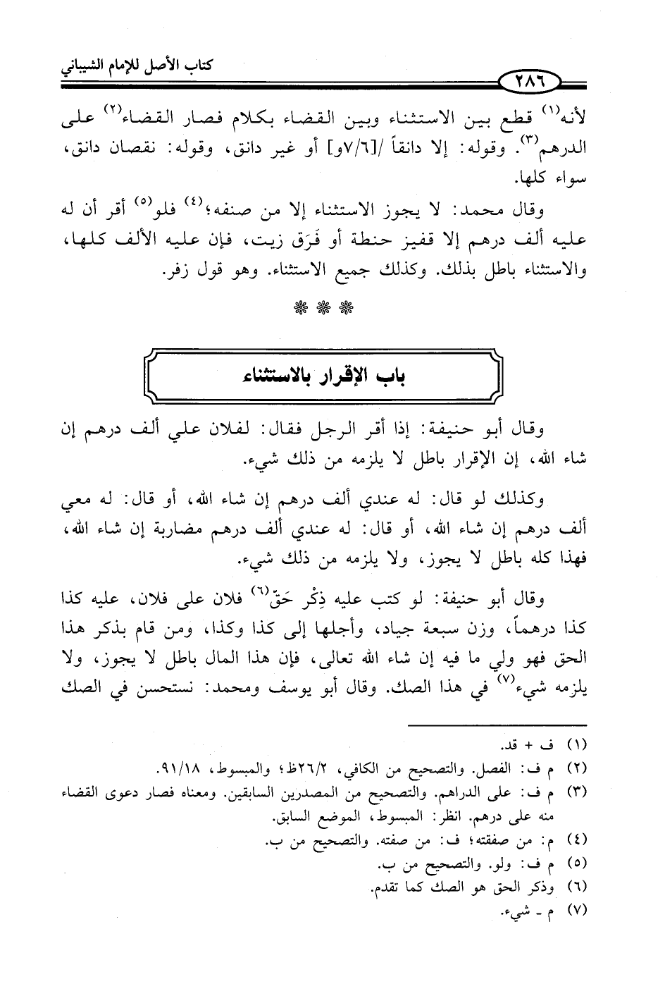 (¬2) م ف: الفصل. والتصحيح من الكافي، 2/ 26 ظ؛ والمبسوط، 18/ 91.