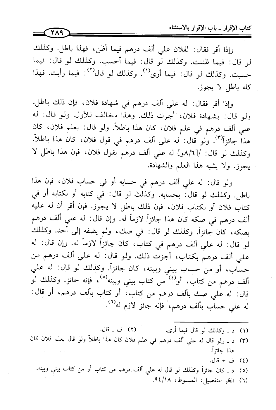 (¬6) انظر للتفصيل: المبسوط، 18/ 94.