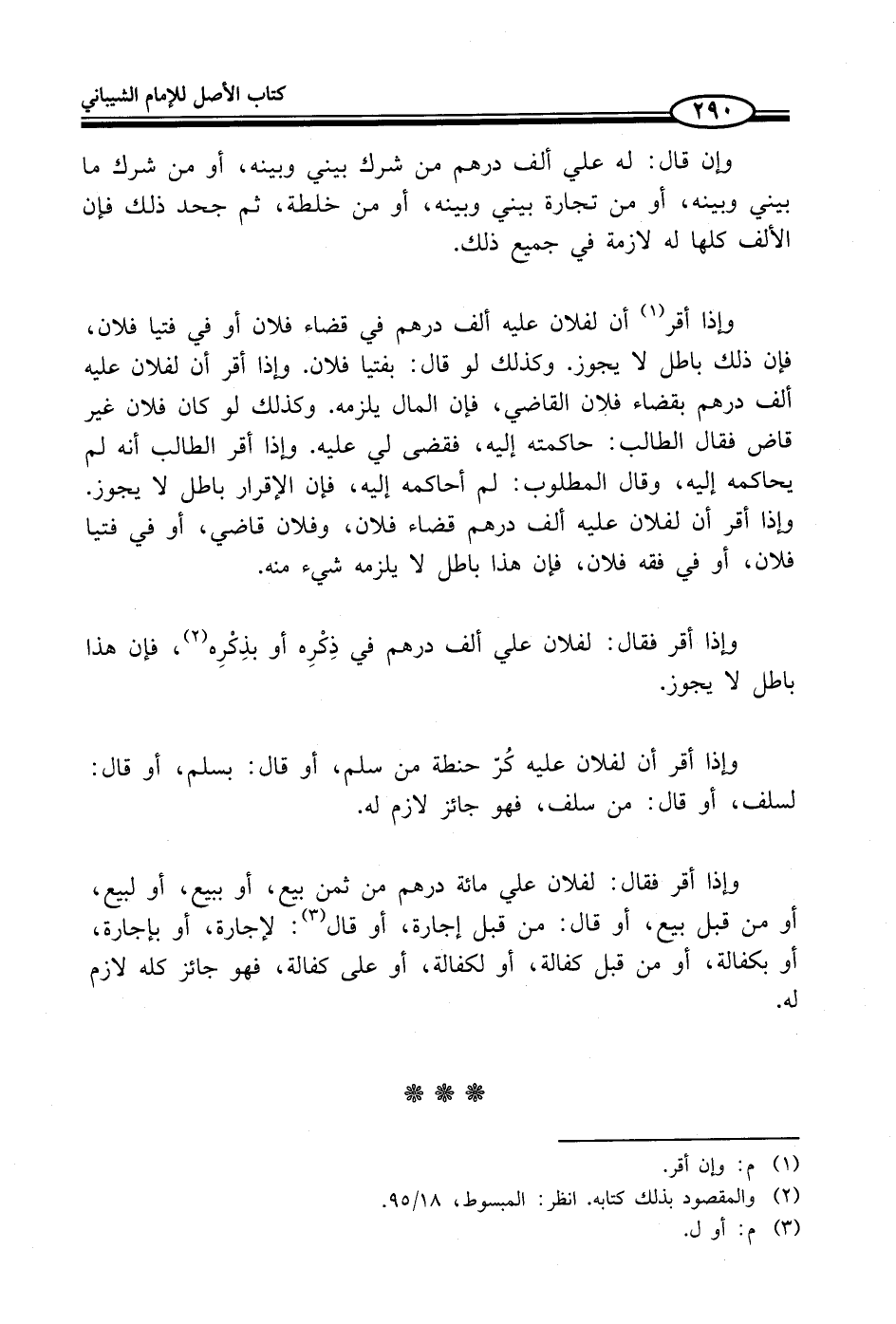 (¬2) والمقصود بذلك كتابه. انظر: المبسوط، 18/ 95.