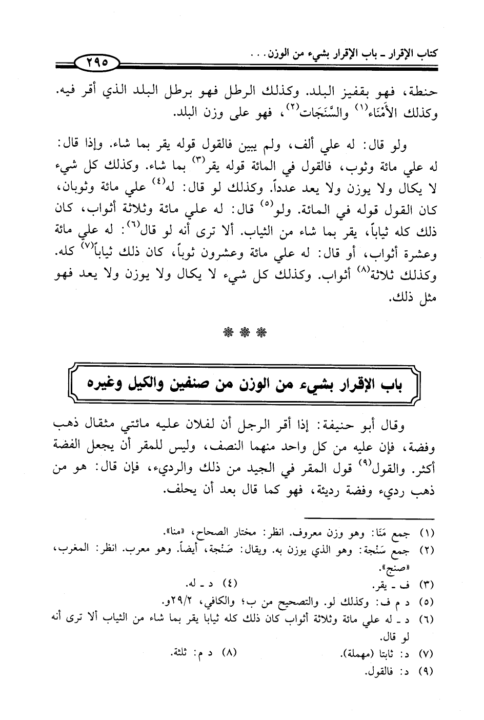 باب الإقرار بشيء من الوزن من صنفين والكيل وغيره