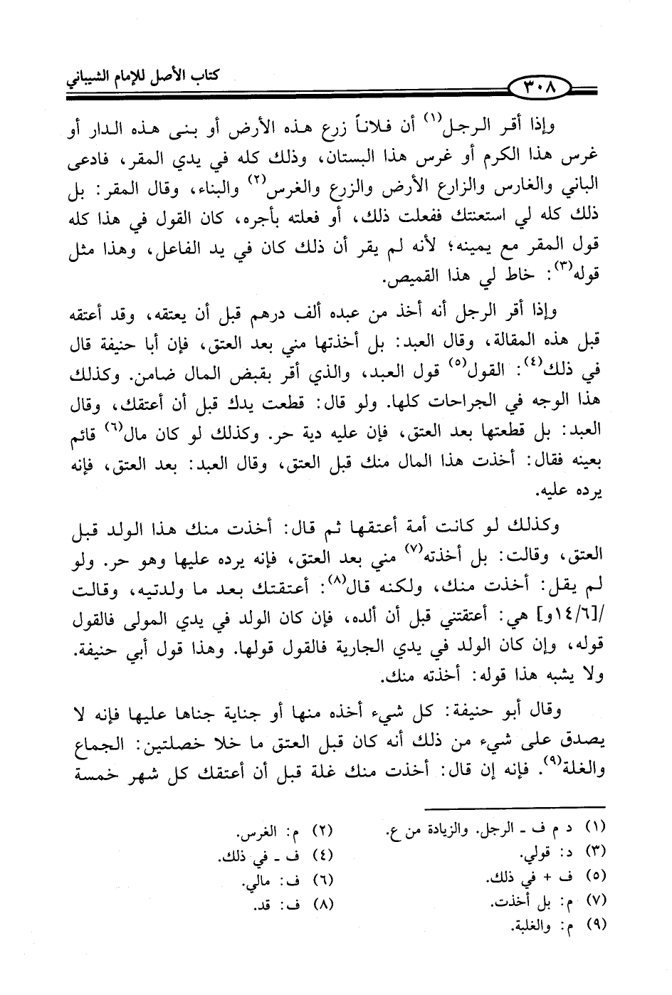 وإذا أقر الرجل أنه أخذ من عبده ألف درهم قبل أن يعتقه، وقد أعتقه قبل هذه المقالة، وقال العبد: بل أخذتها مني بعد العتق، فإن أبا حنيفة قال في ذلك (¬4): القول (¬5) قول العبد، والذي أقر بقبض المال ضامن. وكذلك هذا الوجه في الجراحات كلها. ولو قال: قطعت يدلّ قبل أن أعتقك، وقال العبد: بل قطعتها بعد العتق، فإن عليه دية حر. وكذلك لو كان مال (¬6) قائم بعينه فقال: أخذت هذا المال منك قبل العتق، وقال العبد: بعد العتق، فإنه يرده عليه.