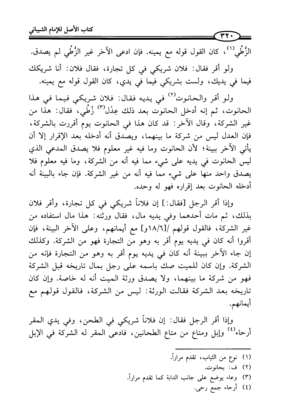 وإذا أقر الرجل فقال: إن فلاناَ شريكي في الطحن، وفي يدي المقر أرحاء (¬4) وإبل ومتاع من متاع الطحانين، فادعى المقر له الشركة في الإبل