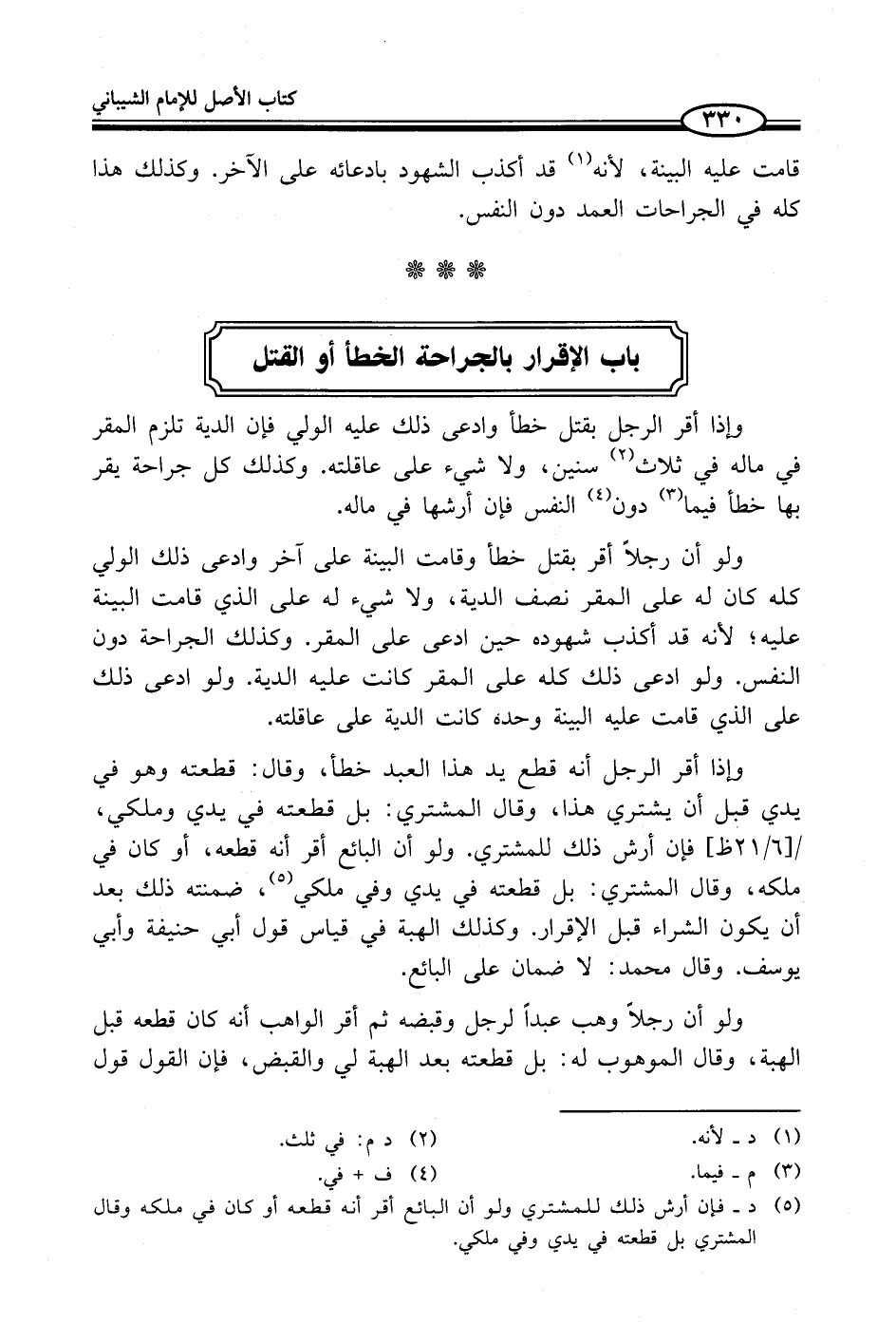 باب الإقرار بالجراحة الخطأ أو القتل