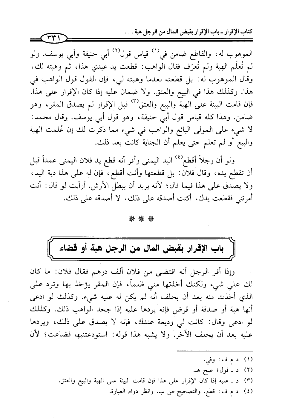 باب الإقرار بقبض المال من الرجل هبة أو قضاء