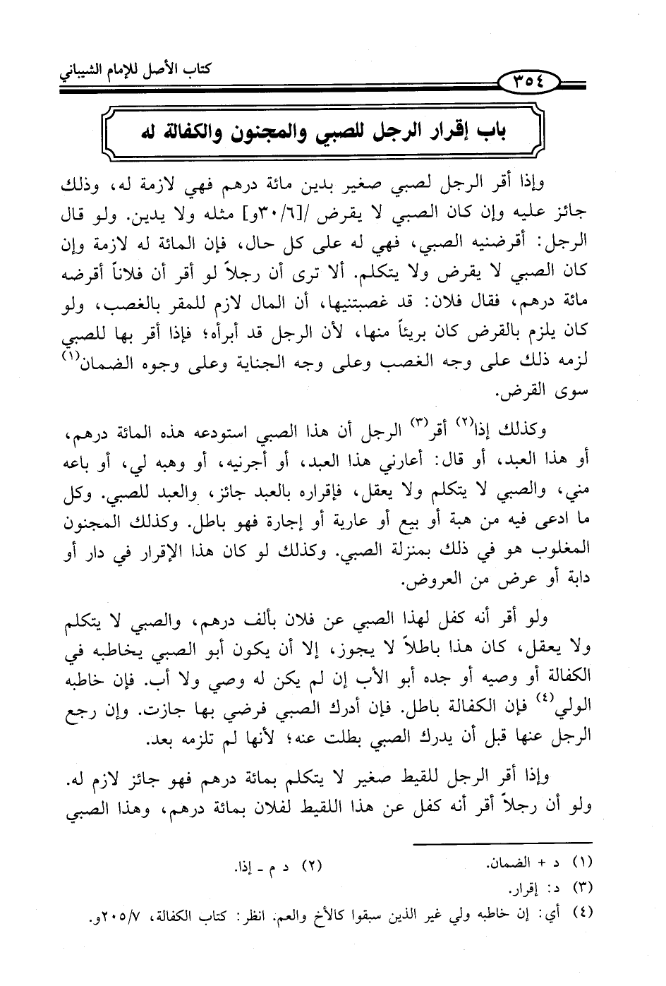 باب إقرار الرجل للصبي والمجنون والكفالة له