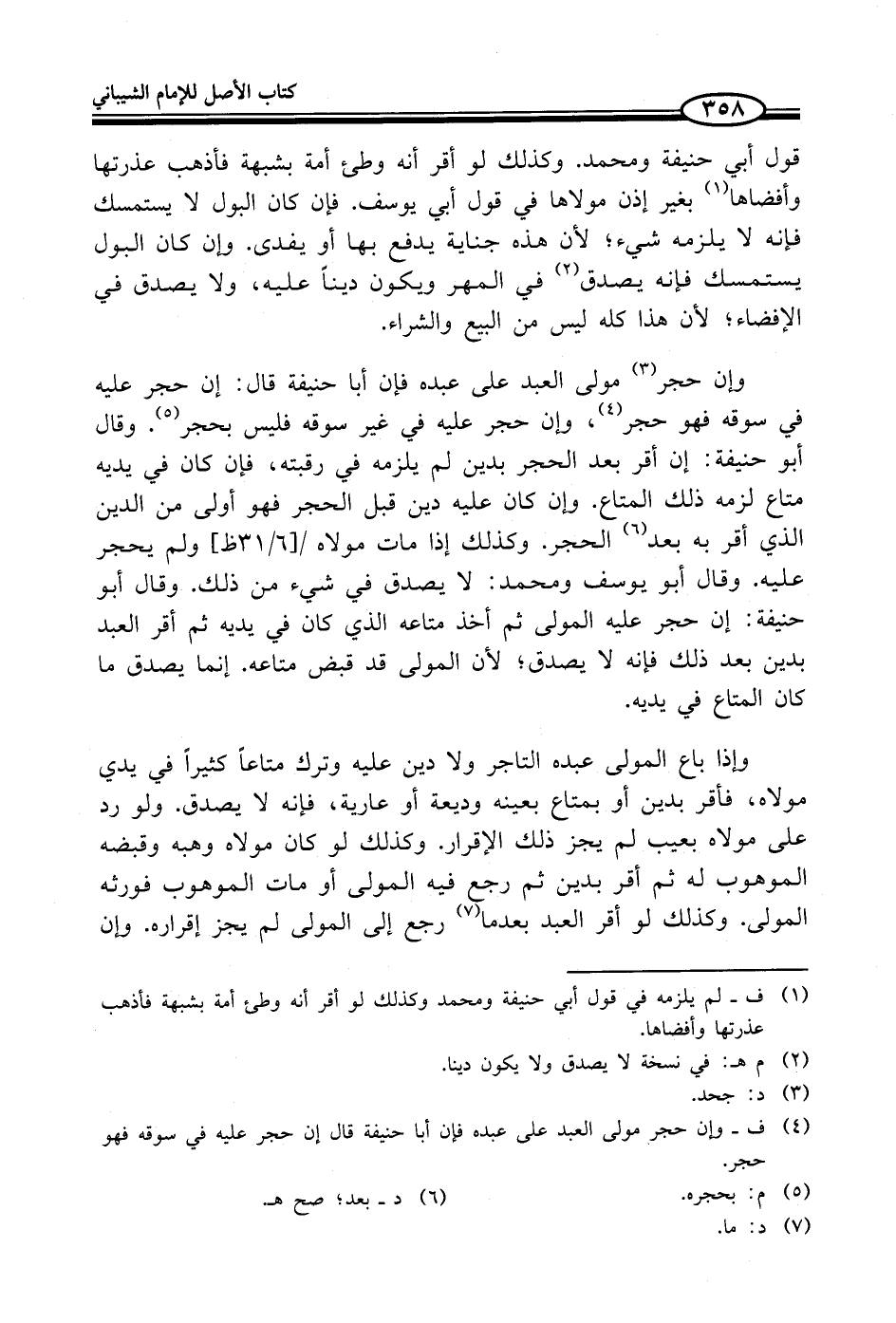 (¬4) ف - وإن حجر مولى العبد على عبده فإن أبا حنيفة قال إن حجر عليه في سوقه فهو حجر.
