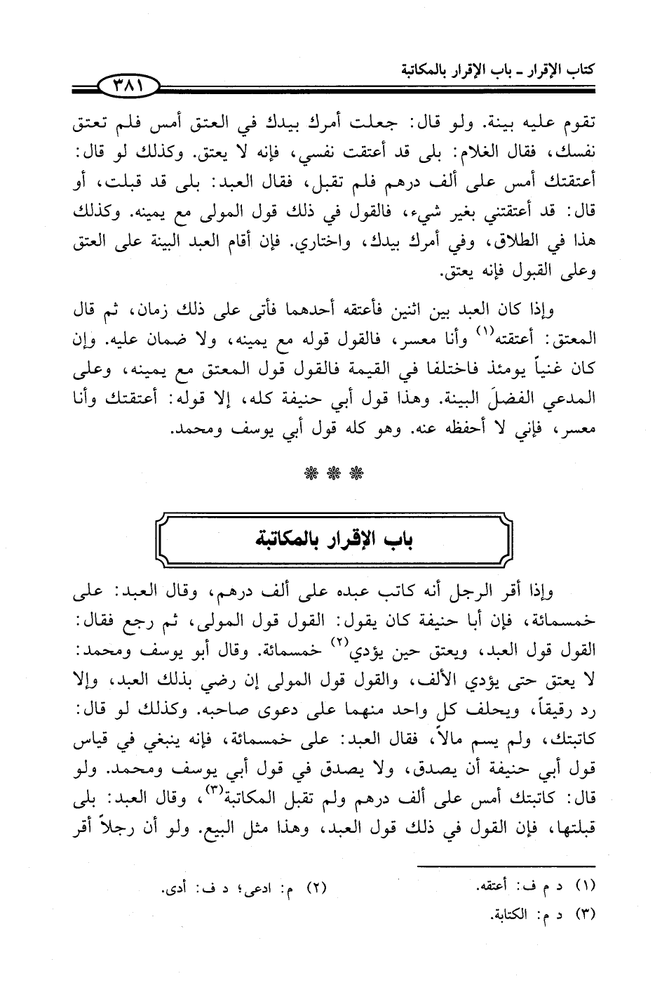 باب الإقرار بالمكاتبة