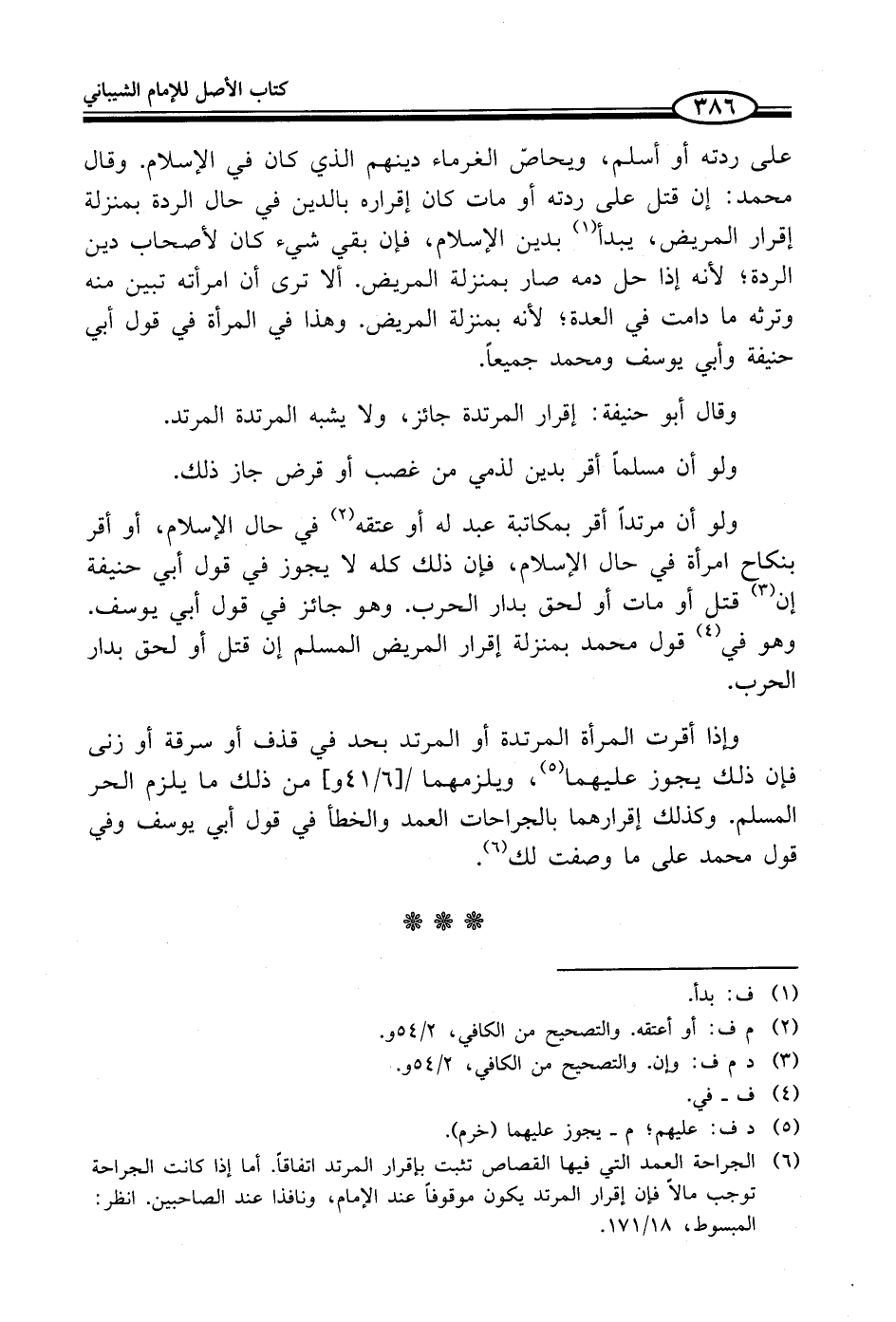 (¬6) الجراحة العمد التي فيها القصاص تثبت بإقرار المرتد اتفاقاً. أما إذا كانت الجراحة توجب مالاً فان إقرار المرتد يكون موقوفاً عند الإمام، ونافذا عند الصاحبين. انظر: المبسوط، 18/ 171.