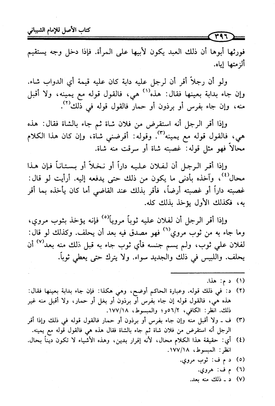 (¬4) أي: حقيقة هذا الكلام محال، لأنه إقرار بدين، وهذه الأشياء لا تكون ديناً بحال. انظر: المبسوط، 18/ 177.