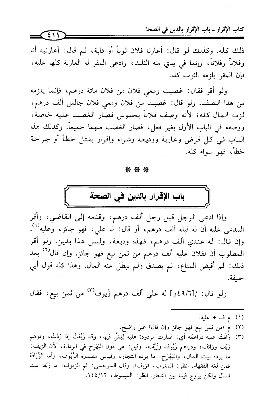 (¬3) زَافَتْ عليه دراهمُه أي: صارت مردودة عليه لِغِشِّ فيها، وقد زُيِّفَتْ إذا رُدَّتْ، ودرهم زَيْف وزائف، ودراهم زُيُوف وزُيَّف، وقيل: هي دون البَهْرَج في الرداءة، لأن الزيف: ما يرده بيت المال، والبَهْرَج: ما يرده التجار، وقياس مصدره الزُّيُوف، وأما الزَّيَافَة فمن لغة الفقهاء. انظر: المغرب، "زيف". وقال السرخسي: ثم الزيوف: ما زيّفه بيت المال ولكن يروج فيما بين التجار. انظر: المبسوط، 12/ 144.